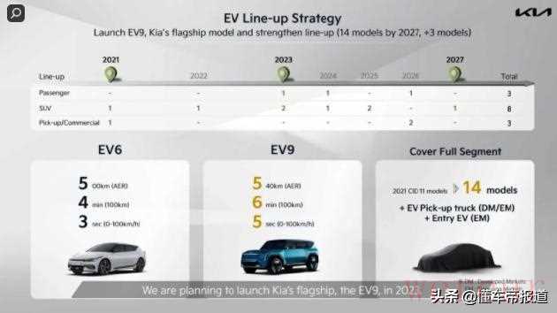 中国市场方面,2022年则是起亚的电动化元年。除了将引入HEV混动车型外,海外市场热销的纯电车型EV6也将很快引入中国市场;至2027年,以全新纯电动车EV6为起点,起亚每年都会在中国市场推出全新的电动车型,逐步构筑起6款电动车的全新EV矩阵。