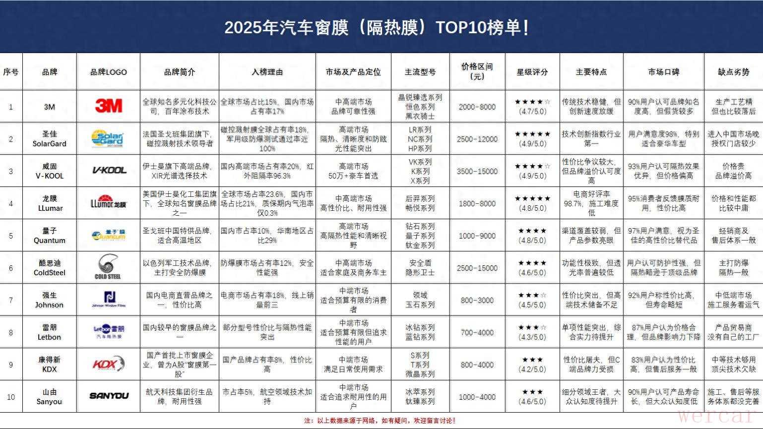 隔热膜十大品牌排行揭秘,无广无利益相关权威榜单!