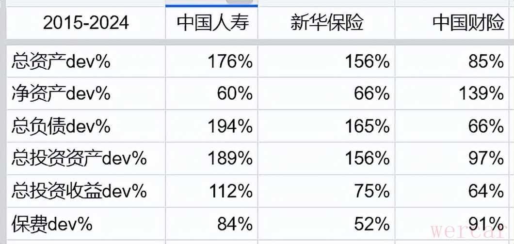 我其实是做过一个过去十年的2个纯寿险公司和1个纯财险公司的主要数据比较,我直接用2024年的数据比2015年的数据。