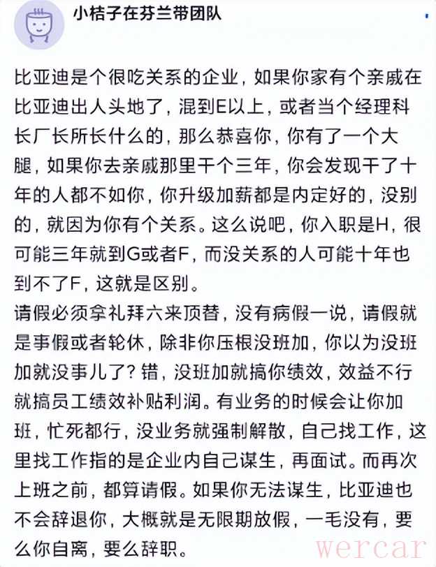 看完比亚迪内部员工的爆料,其实要放平心态,哪里都一样,靠近核心的地方待遇更高,有熟人更容易混。别被加班和高强度所吓住,头部公司值得去体验,拥有好的光环很重要,直接干过什么和了解过什么不冲突,一切靠自己包装和润色。