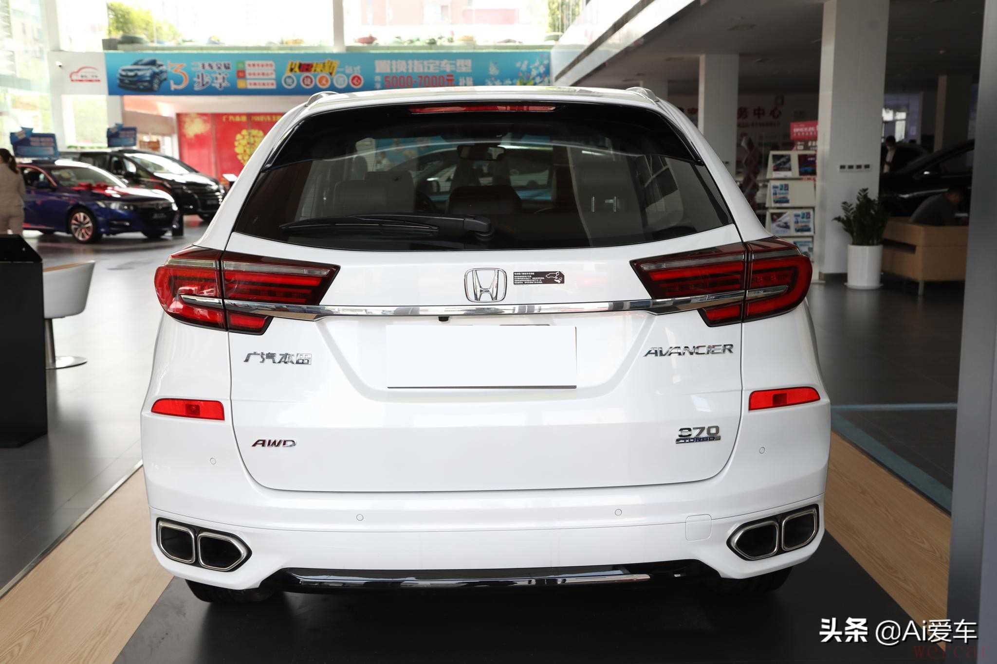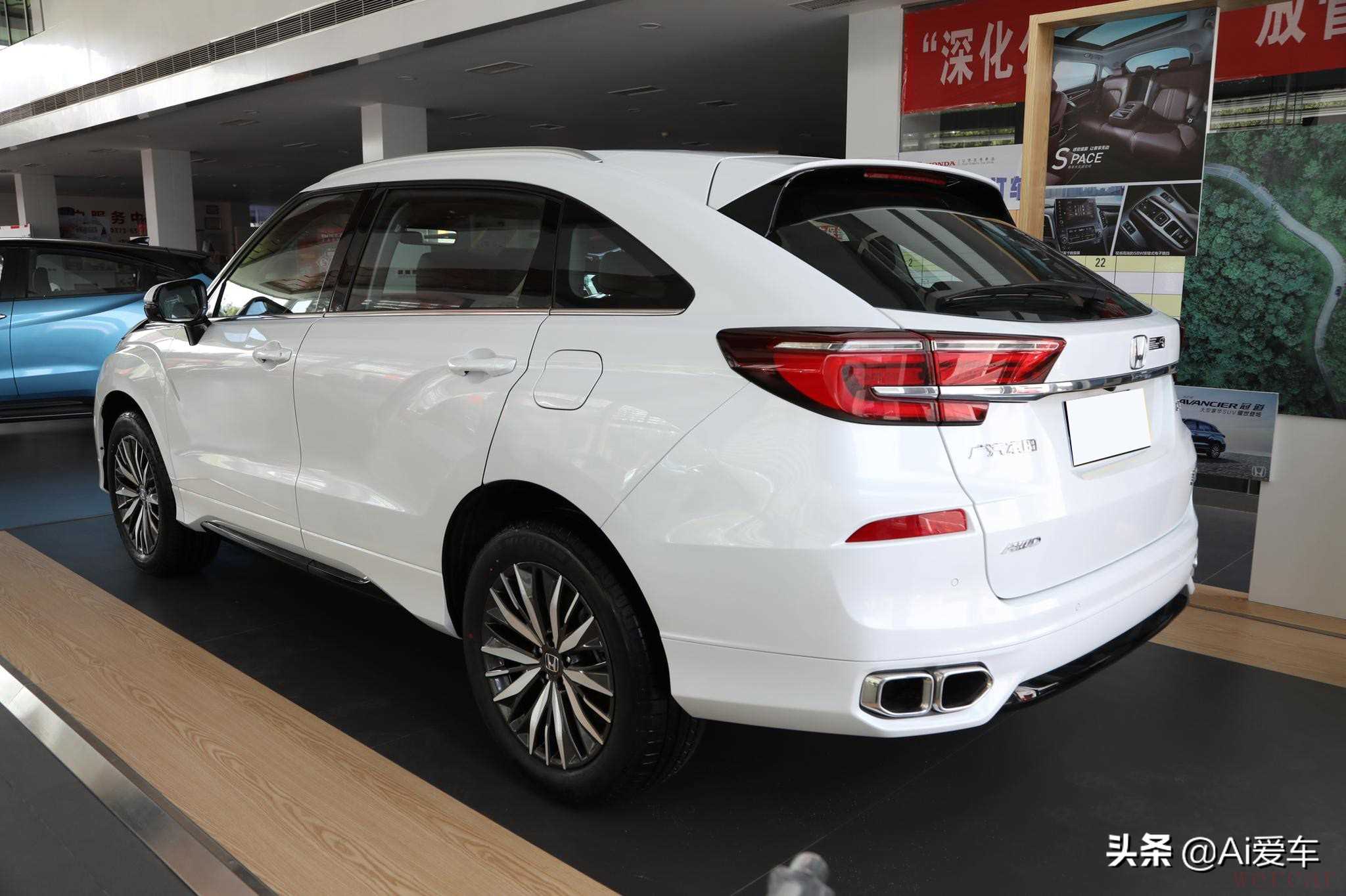 往后来看,尾部整体圆润光滑的造型,看着很有性能SUV的动感,尾灯的半回形的设计和雅阁的几乎一致,双侧四出的镀铬尾排,进一步增强整车的运动感。