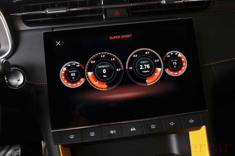 比较有意思的是,按下方向盘上的“SUPER SPORT”按键以后,除了变速箱的逻辑发生变化之外,排气阀门也会自动打开,与此同时12.3全液晶表盘会变成红色主题,多媒体屏幕也会以“转速表”的形式直观显示冷却液温度,涡轮增压压力、机油压力、进气温度等数据。这种瞬间的变幻让你觉得有些不可思议,你想象到能营造运动驾驶氛围的东西它都基本齐活了,无非是在“SUPER SPORT”模式下不会自动关闭ESP,当然我完全赞同MG工程师的这种做法,毕竟它的本质属性只是十几万的家用车,安全肯定是首要的,相信未来它的主人只需要它带来这种运动的氛围就行了,也没有几个人真会拿它下赛道。