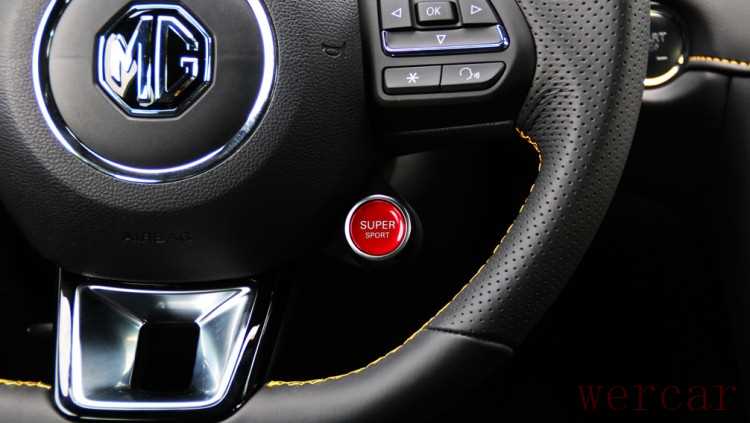 方向盘上的红色按键SUPER SPORT,顾名思义就是“超级运动模式”(赛道模式),通俗点说,该模式下有着最动劲的动力输出。“超级运动模式”的按键位置和功能都比较特别,很容易激起你的驭望,印象中同级或者说同价位仅此一家,如此的手法不难让人联想到保时捷那个选装价格都要五位数的Sport Chrono组件,两者不管功能还是按键位置都有着异曲同工之妙。我知道拿一台10万块的车和100万的车相提并论显得有些外行,但努力和能力本就是两码事,MG6只是在追求运动的道路上一直努力着。