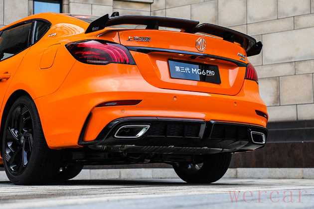 首先,第三代MG6 PRO延续了家族式的“Dragon Face”设计语言,但更显年轻、动感。溜背式造型、无框车门、贯穿式灯带以及精致的细节处理,都让它在路上具有很高的辨识度。车尾的设计尤为引人注目,饱满的尾翼、简洁的镀铬饰条以及贯穿式尾灯,进一步强化了运动的氛围。整体观感时尚且富有力量感,符合年轻消费者的审美。