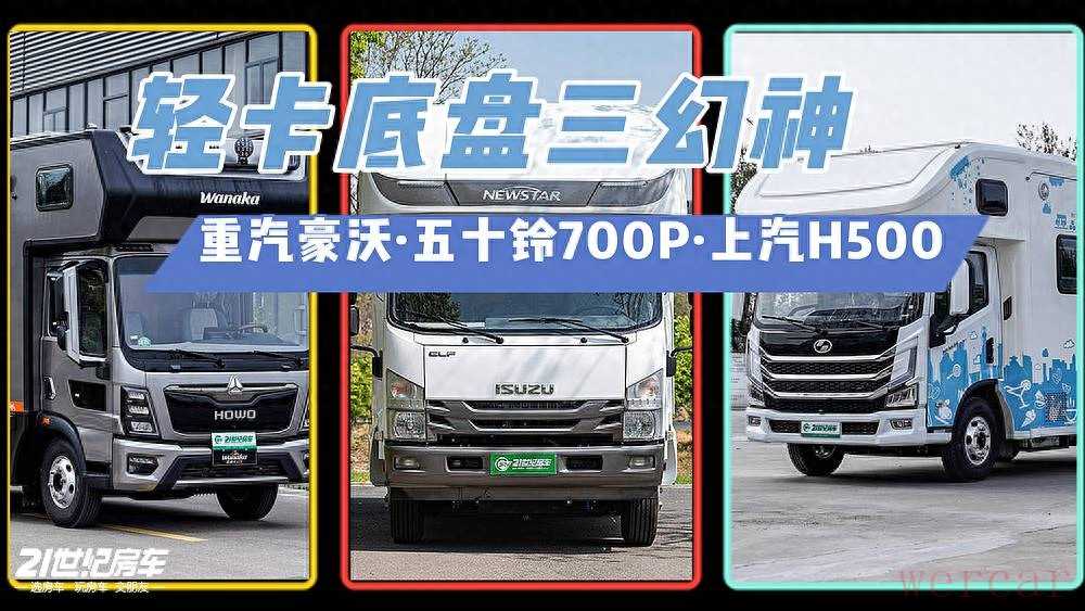 综上所述,上汽跃进H500的核心优势在于不错的性能和较低的改装成本,改装的房车更有性价比;重汽豪沃的核心优势在于8AT变速箱+空气悬挂,可面对更多的路况且有不错的驾乘体验;而五十铃700P的特点是高可靠性、低维护频率以及超大荷载能力,更适合长途旅行。