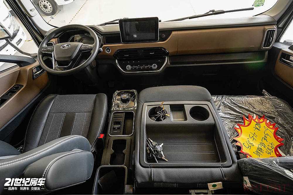 底盘采用直通式大梁+空气悬挂组合,原厂预留驾驶室检修口、油箱第二取油口等房车专用接口。蓄电池前移5cm、油箱外移10cm的设计释放了更多侧空间,便于安装水电设备。