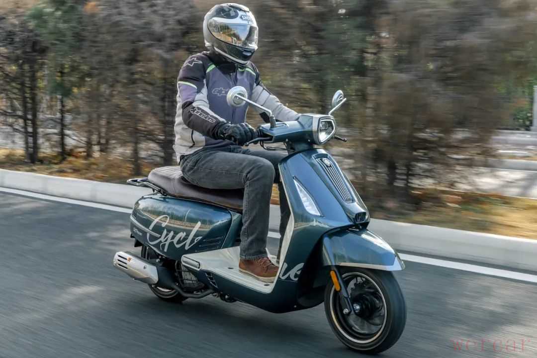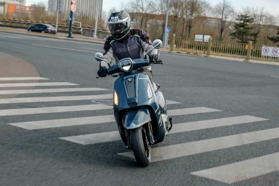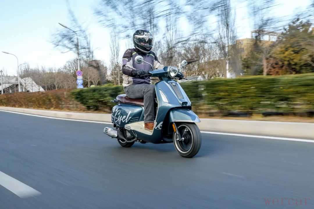 动力从参数表看进行了重新调校,在加速测试中表现还是不错的,0-80km/h能够做进10s,并且能够达到GPS时速100km/h以上,对于一款150复古风格踏板车,这样的动力在城市中使用完全足够。在骑行以及加速测试中,能明显感觉到这款车的油门非常线性,传动匹配更注重全转速域输出,在6000r/min以后依旧有不错的发力,算是一台很有劲的复古踏板车。