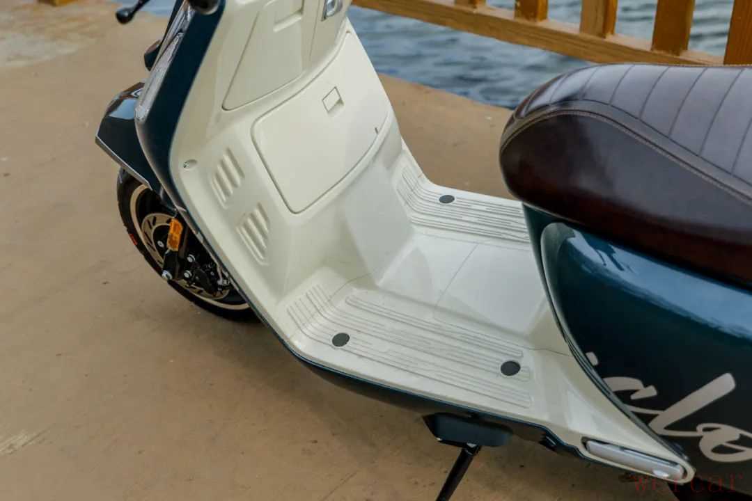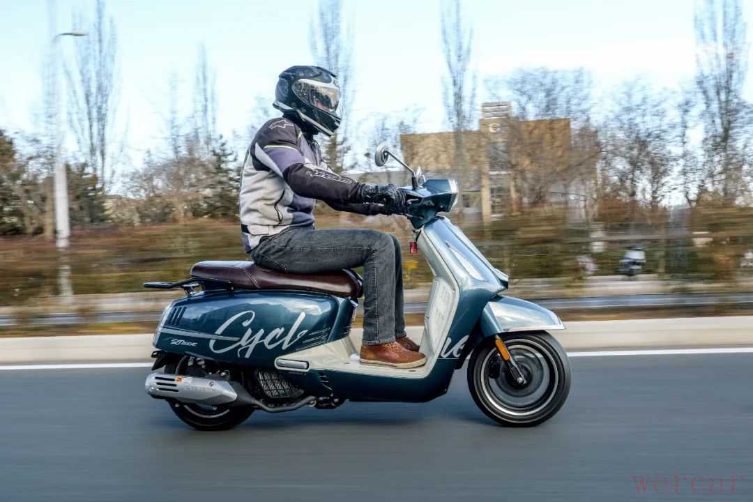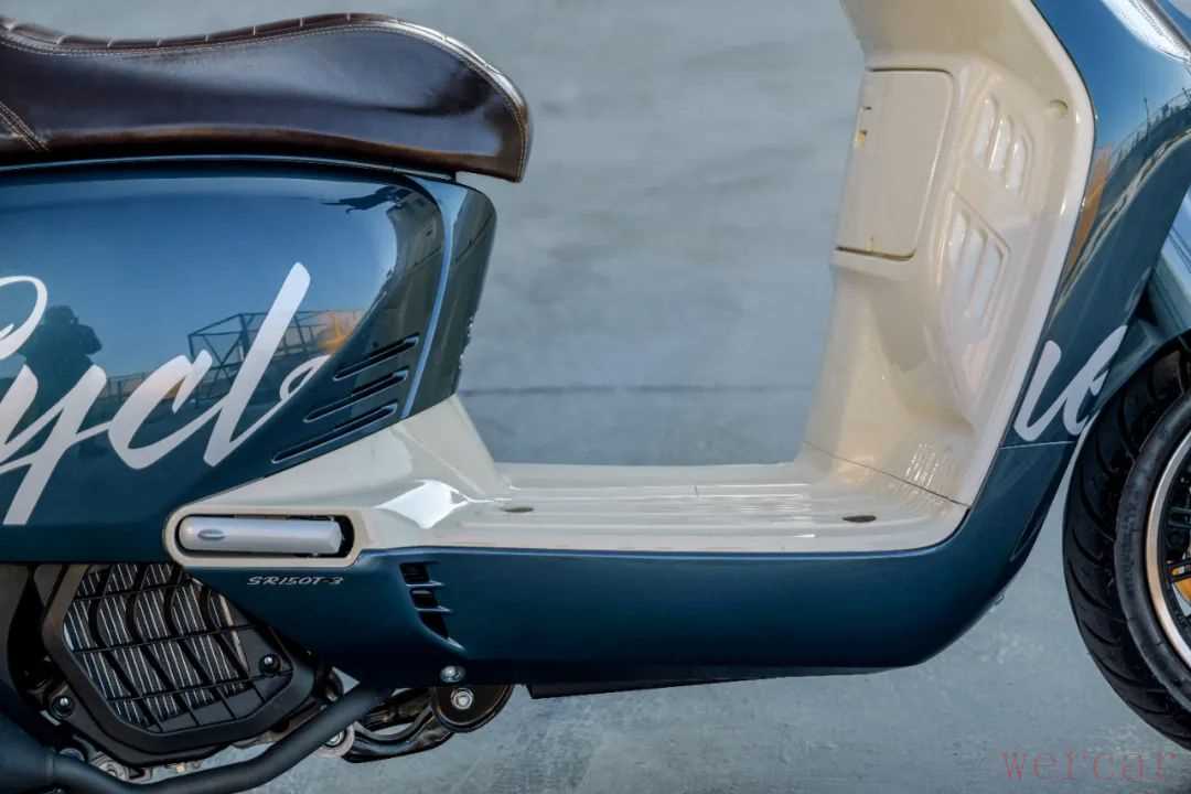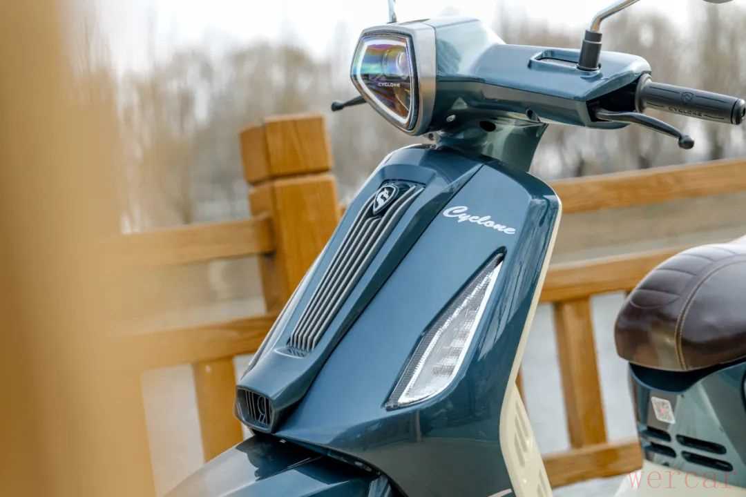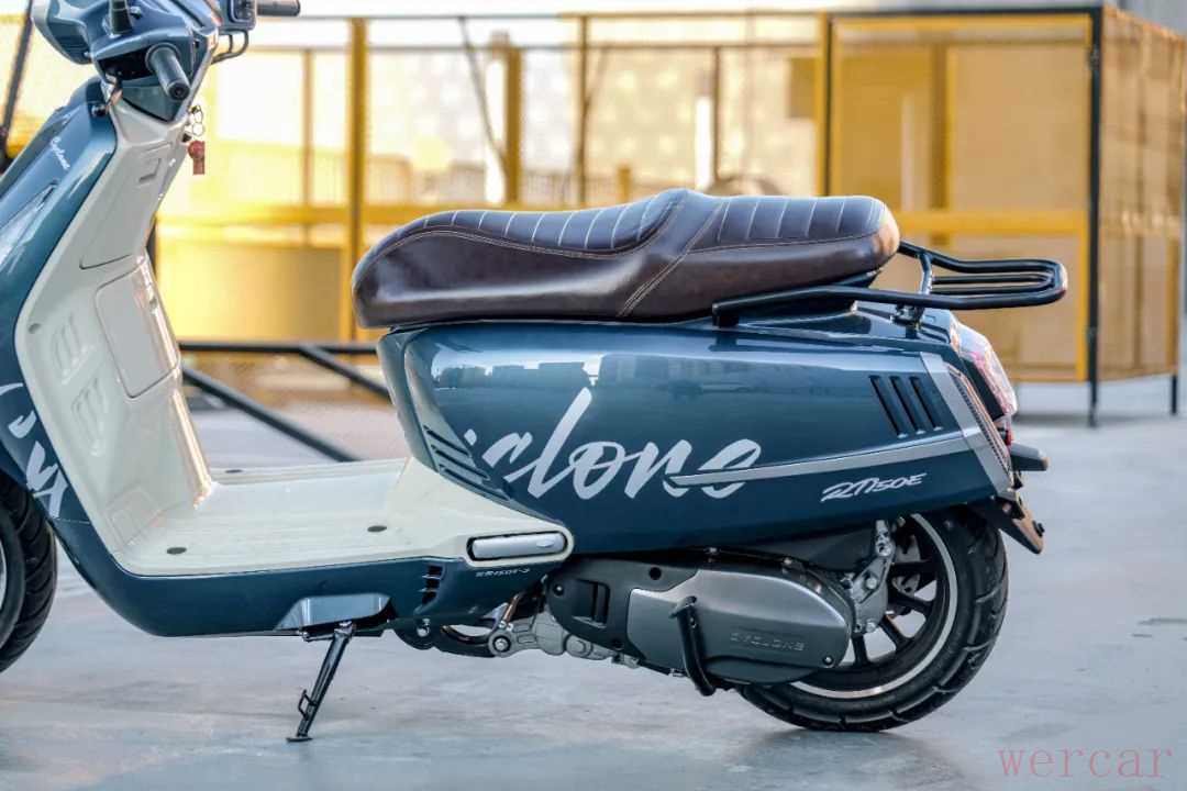 作为一台定位为都市通勤的150踏板车,这款车的轴距有1410mm,让这款车有不错的空间。135kg的整备质量让这款车驾驶质感比较沉稳,车头有厚重感,很有复古踏板车的特性。在这种沉稳下,这款车依旧保留了一定的灵活性,尤其是在低速转弯和掉头时,没有明显笨重的感觉,即便是新手也会觉得非常可控。