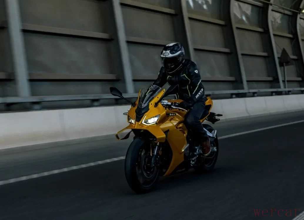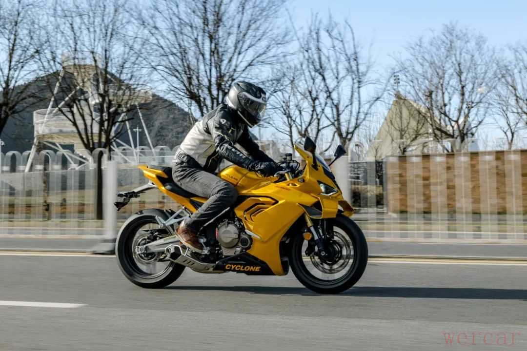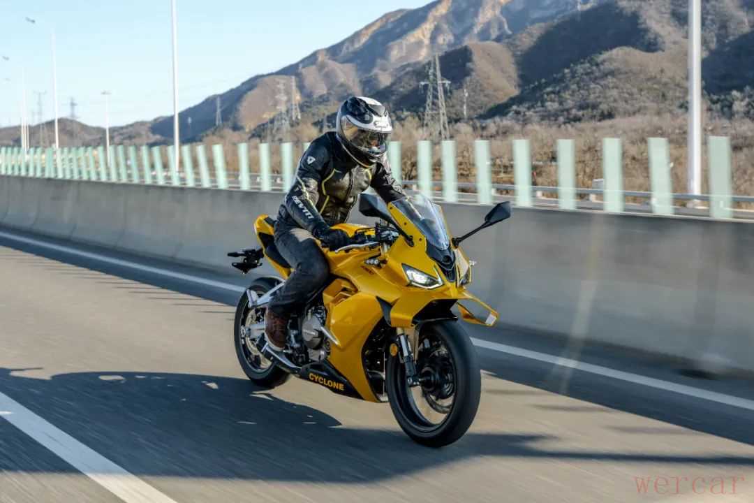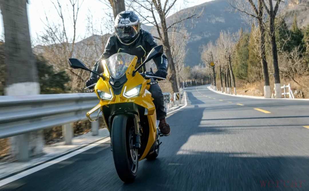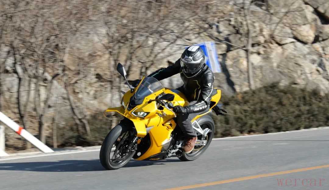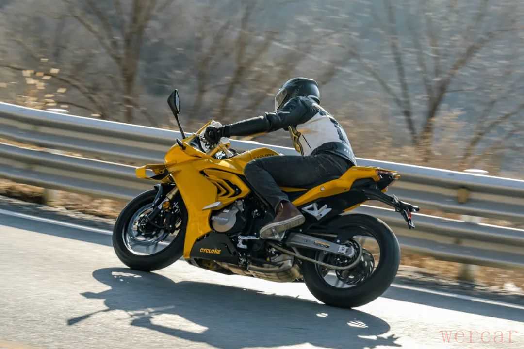 对于一款仿赛车款来说,少了高转的延展性确实有些遗憾,但在日常驾驶中,这款车动力特点还是很适合的,即便是原地推行,纤细的车身也能让你省些力气。较宽的车把让你在运动驾驶时不用太费劲,操控非常轻盈,同时指向性很好,车架不会出现多余的晃动,运动风范拉满。不过略带战斗的坐姿加上较小的舵角,在低速时还是会带来一些困扰。总体来说这款车在保留运动驾驶风格的同时,给你更轻的车重和更适配日常骑行的动力,算是一款非常有特点的中量级仿赛。