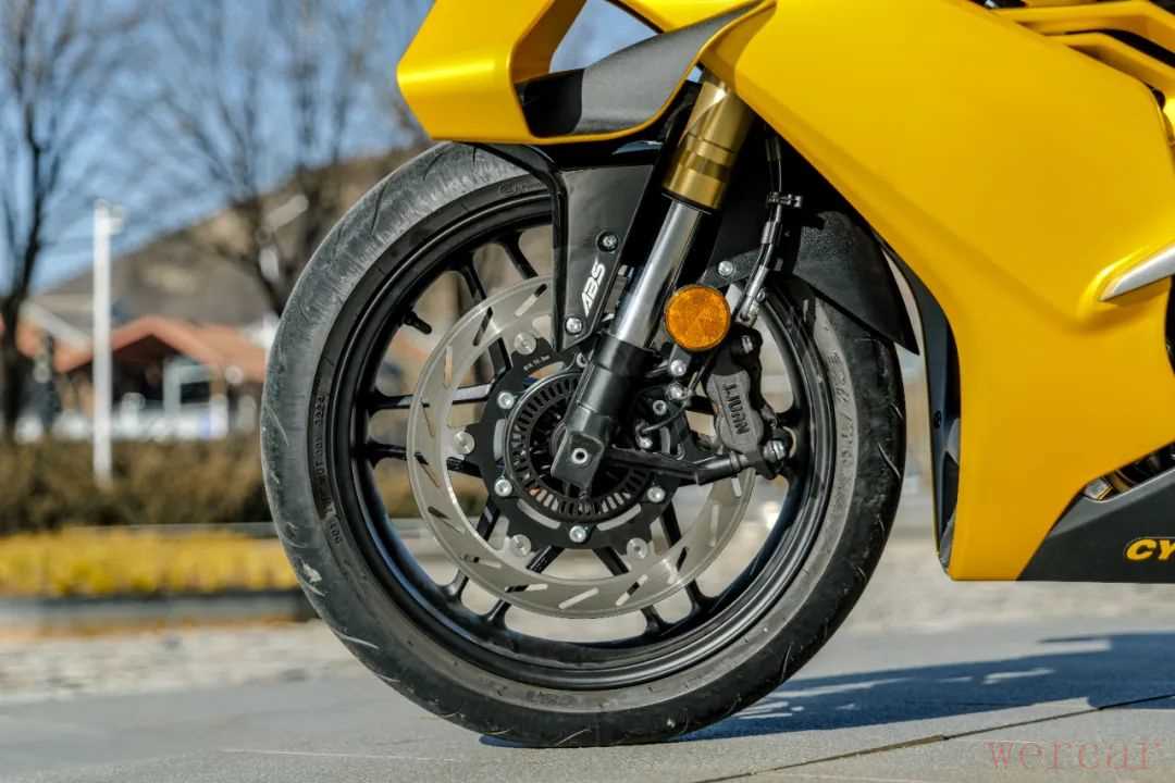 减震系统采用可调配置,倒置前减震阻尼可调,单筒后减震预载和阻尼可调。制动系统没有一味的追求外观,前制动没有盲目采用双盘,采用的是320mm半浮动单盘配对向四活塞卡钳,其中卡钳和上泵均为西互品牌,后制动为260mm制动盘配单活塞卡钳,标配ABS。