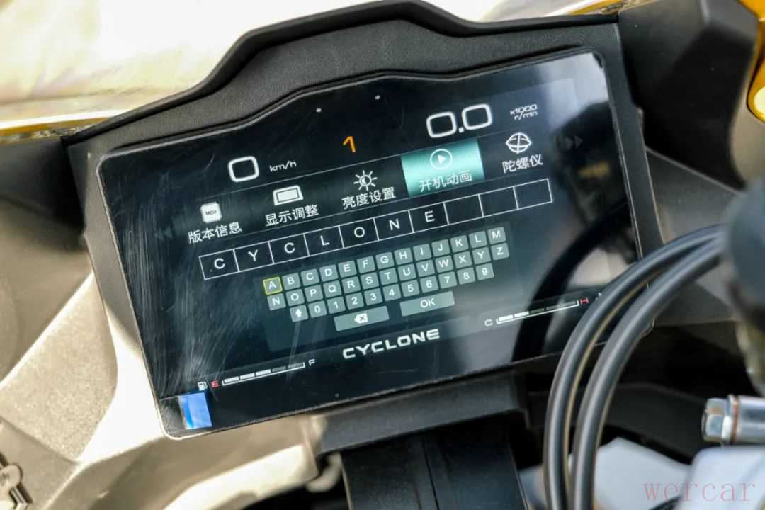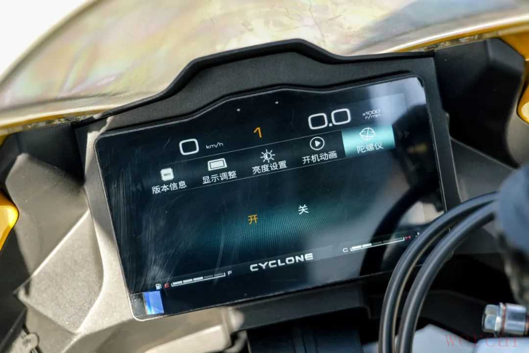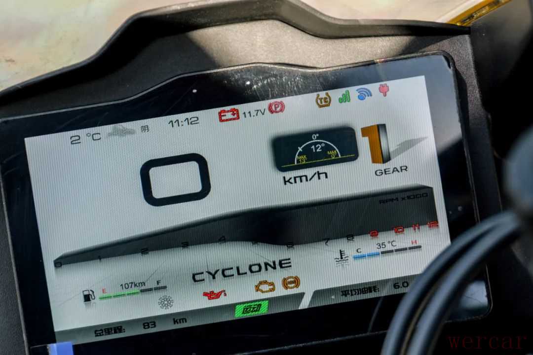 配置上这款车非常也达到了同级别优秀水平,配备了6.5寸的TFT液晶仪表,显示清晰,信息丰富,除了常规的如车速、转速、里程、油量等信息,这块仪表还带有天气预报和倾角实时显示功能,信息全面但这块仪表的界面设计和操作逻辑还有改进的空间。同时RC600还配备了双通道ABS和可关闭的TCS系统,甚至还有两种动力模式可选,在电子配置方面这款车在这个级别中算是最全面的了。