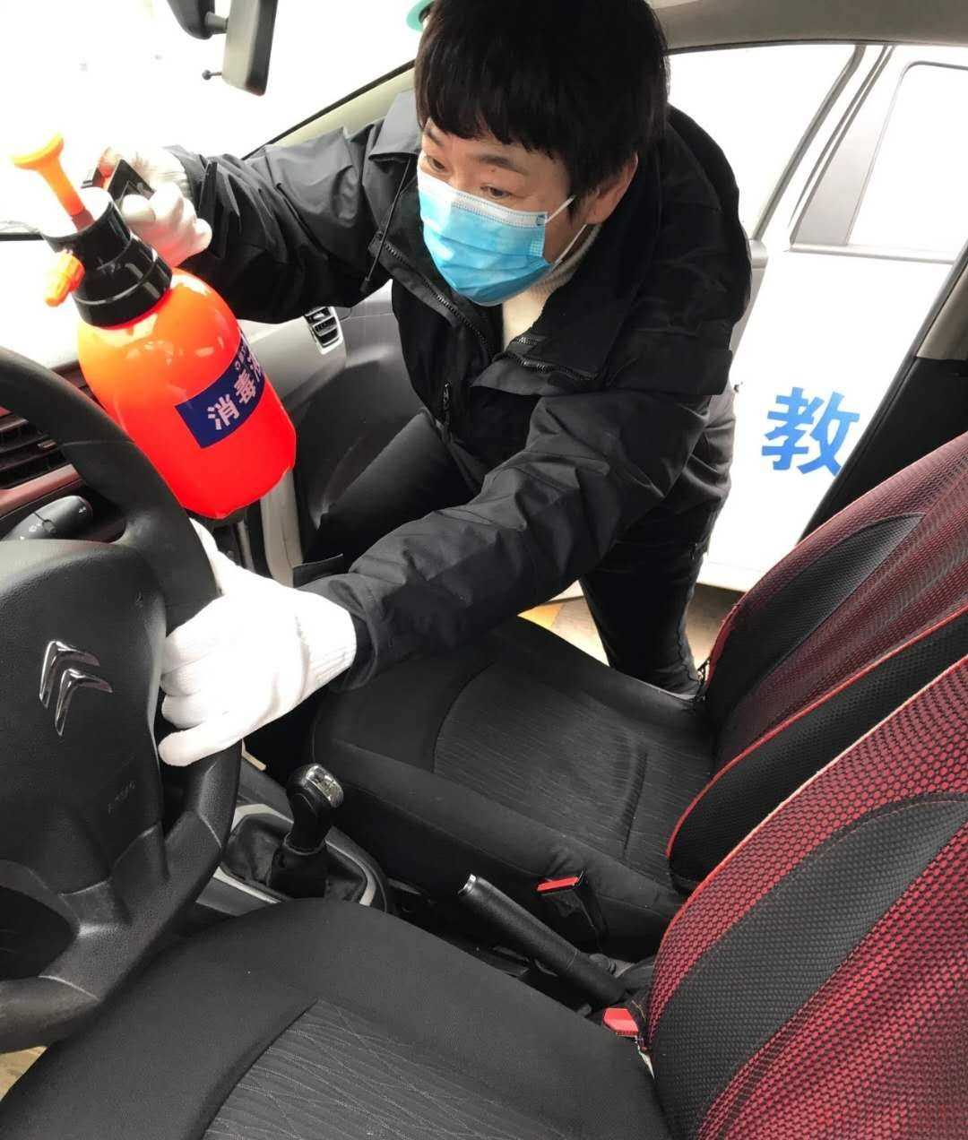 据了解,驾校在训练场内还设置了防疫消毒点,严格执行防疫措施,每天组织对工作区域、训练车辆及设备设施进行卫生清洁和彻底消毒。在培训过程中,学员和教练全程佩戴口罩,保持开窗通风,训练结束后,对方向盘、档位、手刹、座椅等进行消毒,遵守一人一车一消毒制度,消毒完才能换人练车。