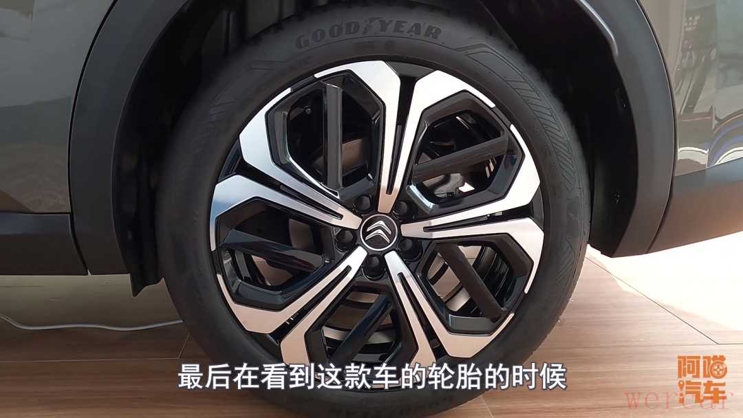 在现场的时候,喵哥也仔细地看了雪铁龙C5X的轮胎,用的是固特异的御乘二代,采购成本不太秀气。固特异的205,55R19的轮胎,在国内市场上很少见,在欧洲逐渐普及,轮胎很窄尺寸又大又高 ,称之为高窄胎。 这款轮胎对于油耗有比较好的反馈,因为轮胎跟地面的接触面小,很多人认为,接触面越小摩擦力越小,车子的稳定性肯定会越差。