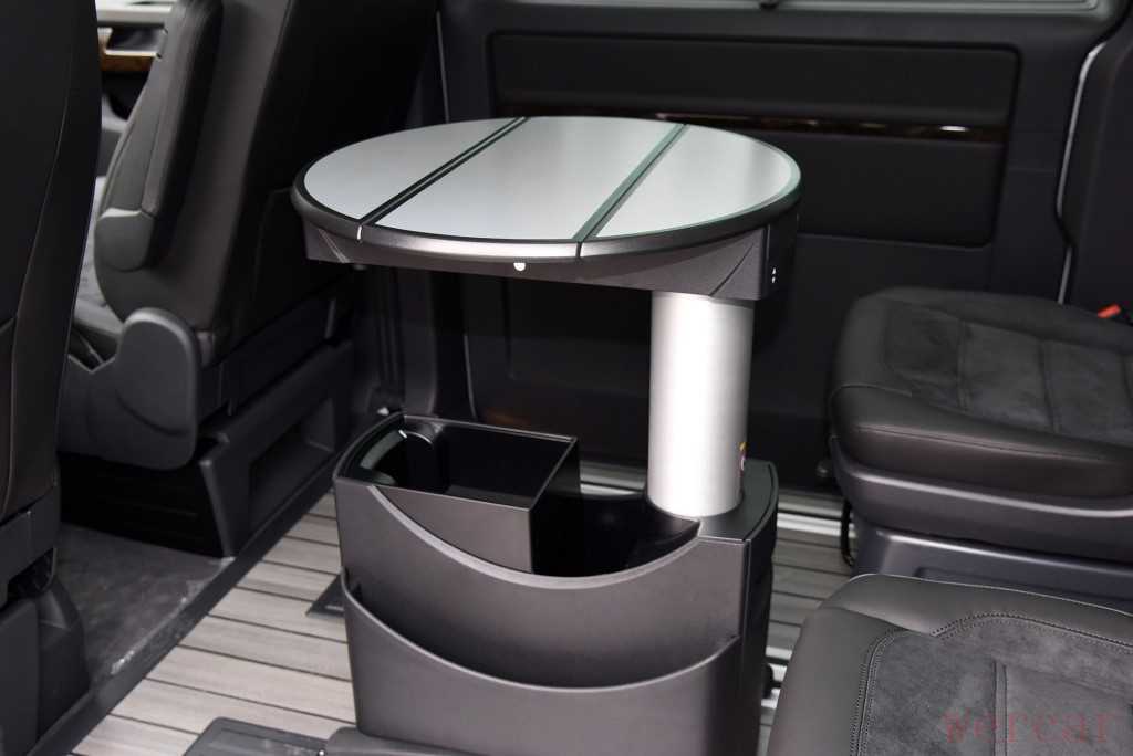 独立空调、座椅通风加热也一样不少,更加人性化的是该车还配备了魔术的小圆桌,这种设计别出心裁,而且配色是这种居家风的感觉,少了商务车的那种浮华感。