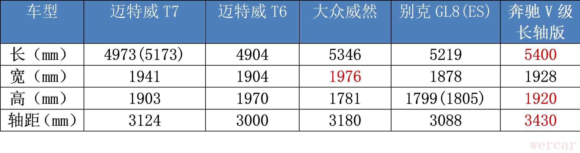 你说拿它跟奔驰V级碰拳头,可大众的光环明显拼不过奔驰品牌,加上V级的尺寸更大,动力牌面也够,这迈凯威T7想要抢一杯羹着实难度不小。