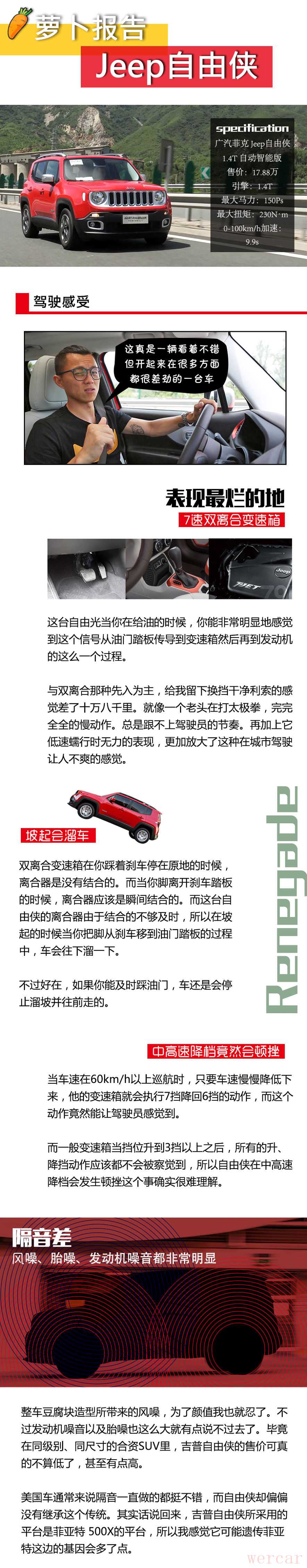 其实,大家不是拒绝Jeep在外观方面的自我突破,而是新的外观并没有抓住消费者的“痒点”。不信你看此次Jeep的全新车型自由侠,同样一改Jeep往日的硬汉造型,变得俏皮、可爱了起来。但这一次,许多消费者在看过它“萌萌哒”的造型后就走不动道了,并且决定非卖不可。不过,毕竟不是所有事物都像其看起来那么美好,所以我想劝这类消费者先Hold住,至少等看完本期《萝卜报告》再决定也不迟。