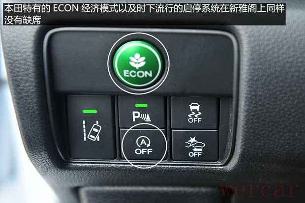 与之匹配的是一台经过改进的CVT变速箱,相比老款不但优化了变速箱的标定,还增加了模拟7速手动换挡以及方向盘换挡拨片,而本田车系常见的经济模式以及发动机启停系统在新雅阁上也同样没有缺失。