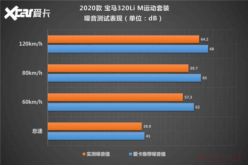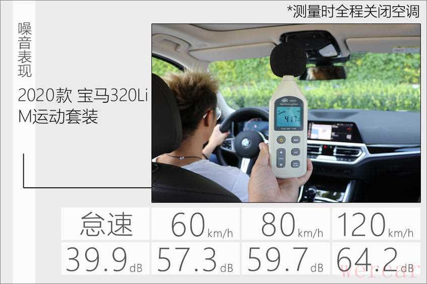 因为车辆隔音出色,所以营造了一个良好的静谧性,实测的数值都在标准推荐值以内。