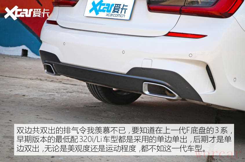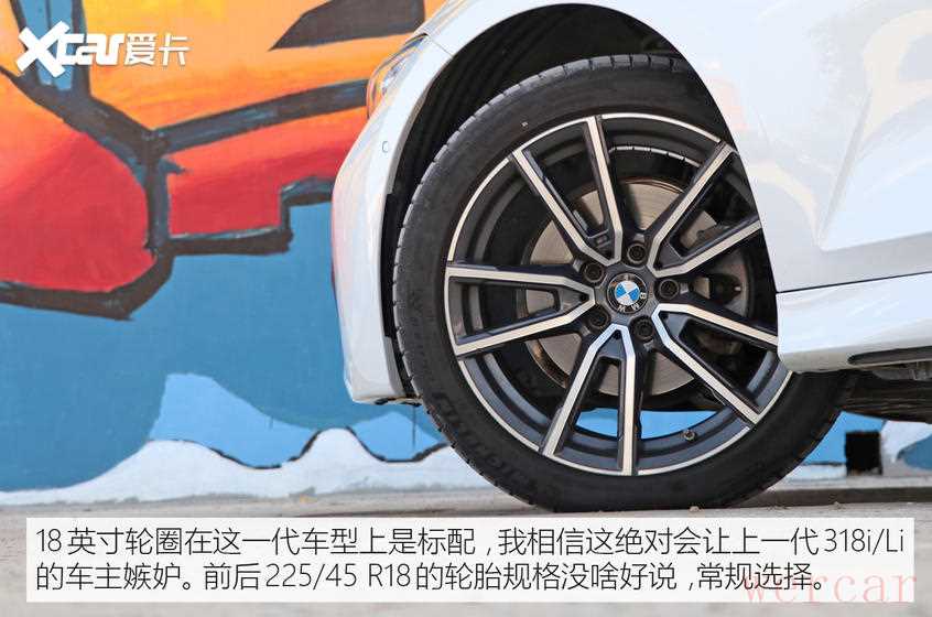 说到轮胎我想多聊两句,我的上一代320i /LiM运动套装,配的是18英寸前窄后宽的轮胎,俗称“鸳鸯胎”,而到了这一代车型,即便是325i/Li车型的前后轮都是同尺寸轮胎,唯有330i/Li车型才开始使用不同胎宽的配置。