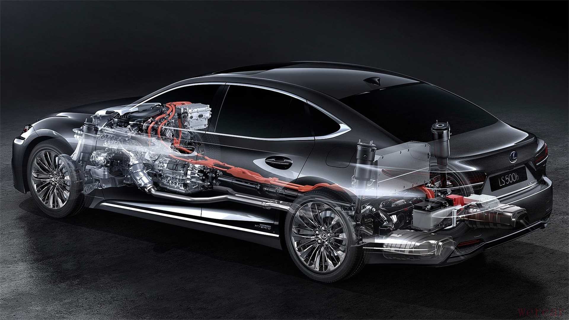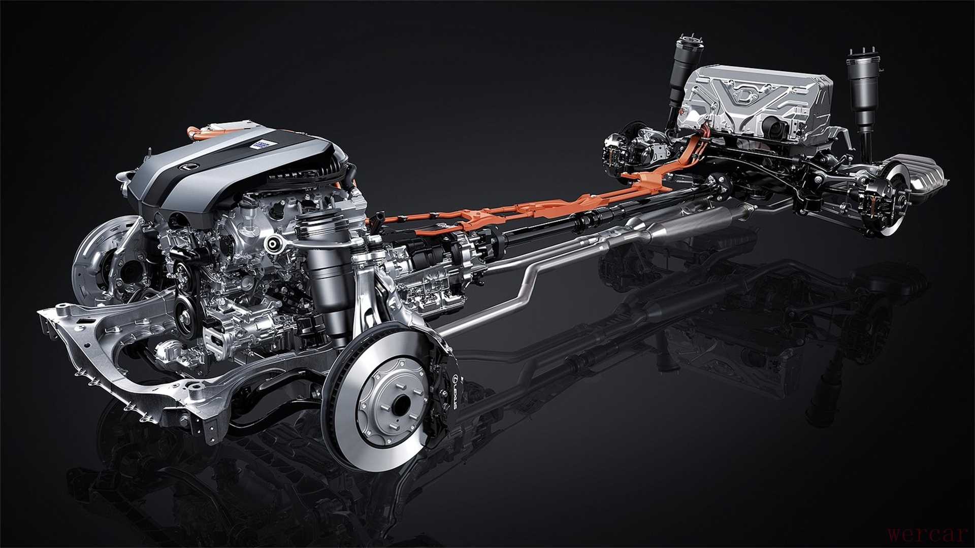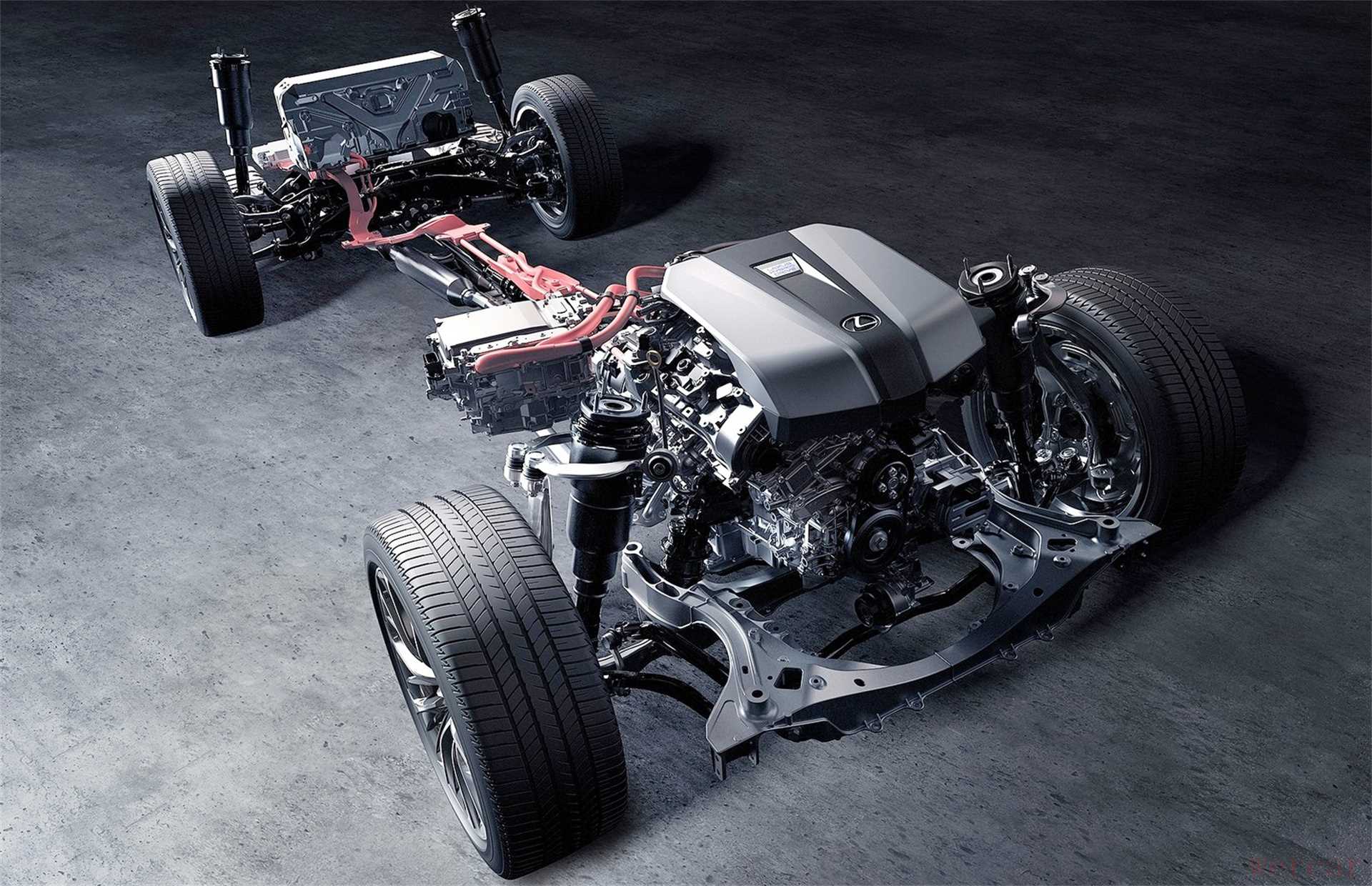 看到这相信就有同学发现不同了,此前的丰田混动系统,除了发动机外只有E-CVT变速箱,也就是由两台电机和行星齿轮组共同构成的调速机构。而LS上的多级全混动技术,则多了一个4AT变速箱。