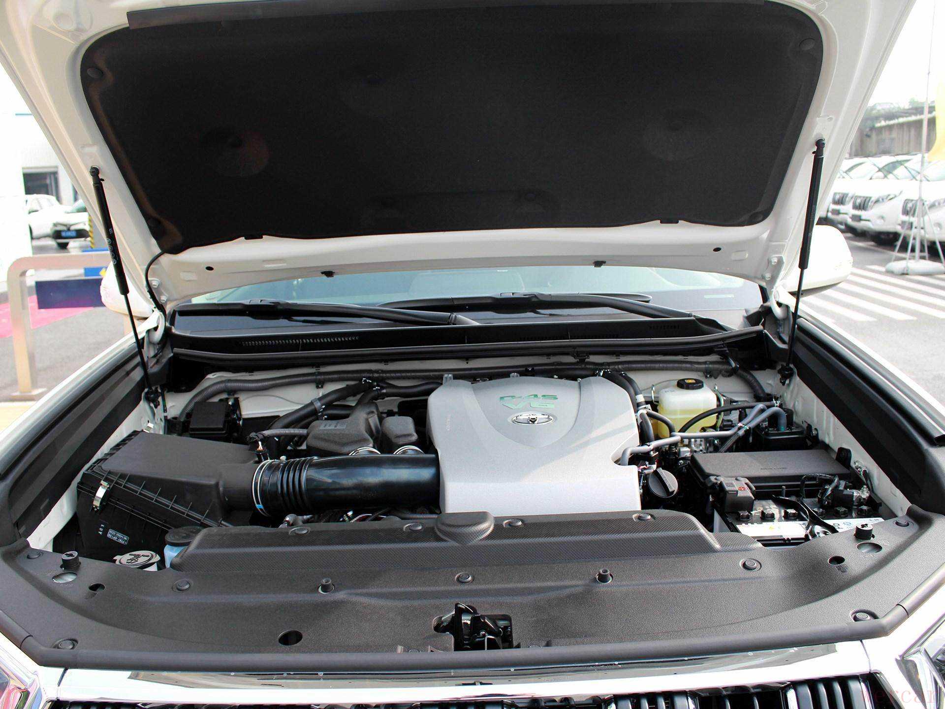 "细节特征:" 前脸的“大嘴”进气格栅、醒目的丰田牛头标、粗壮的侧踏板、大尺寸轮毂(通常是17或18英寸)以及备胎外置的设计(中网车型)。
