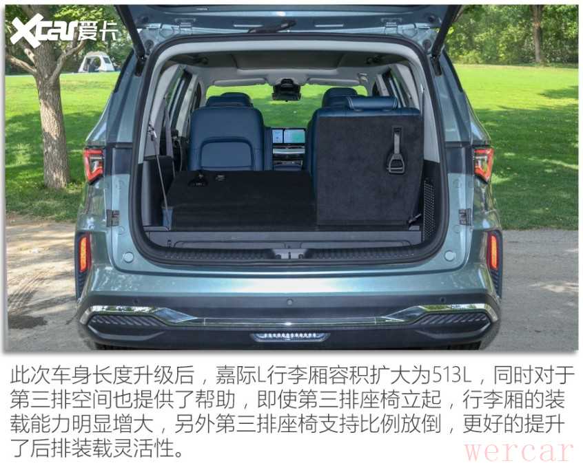 实拍车辆采用了2+2+2的6座布局,我个人认为是最合理且实用的组合方式。除此之外,嘉际L车型还提供有7座版本,为2+2+3布局方式,消费者可以根据自身需求进行选择。