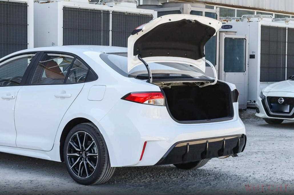 车侧和车尾没有使用过多锋利的线条来凸显运动感,而是通过面的造型展现出运动优雅的一面,这也是丰田对运动的独特理解,双色双五福轮圈的造型看起来很有运动感,规格尺寸为225/45 R17。连接两侧尾灯间的镀铬饰条改为黑色烤漆饰板,下包围大面积的黑色护板增强了车尾的层次,上翘的车尾拥有更强的雕刻感,凹凸有致的造型看起来很时尚,狭长的尾灯造型经过重新设计,与车头形成良好呼应,运动感更强,示宽灯与刹车灯采用了LED光源,转向灯采用卤素光源。