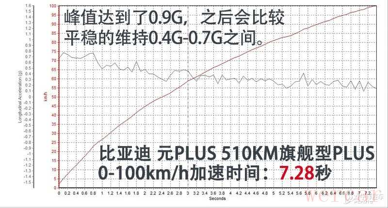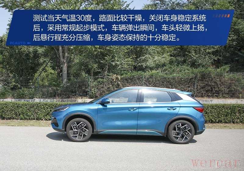 加速测试采用常规的弹射起步模式,并且将车调整至运动模式且关闭车身稳定系统,并全力踩下电门踏板,随即爆发出车辆最大扭矩,车轮出现轻微打滑现象,抬头抑制能力较强,整体姿态保持非常稳健,最终的7.28秒破百的实测成绩,和官方数据非常吻合。