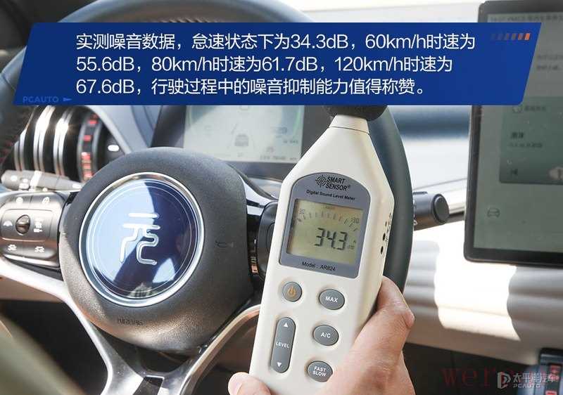 NVH静谧性表现相比上一代车型有明显提升,发动机怠速声在车内感官上表现会更加安静,实测数据怠速状态下为34.3dB,60km/h为55.6dB,80km/h时为61.7dB,120km/h时为67.6dB。