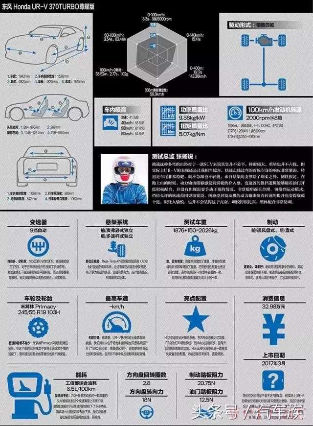 UR-V的转向和踏板都非常轻盈,因此在日常驾驶的时候会让人感觉非常顺手。制动表现方面,100公里/小时时速下完全制动的时间为2.77秒,制动距离控制在了38.52米(1.02g),对于一款SUV来说,制动成绩优秀。