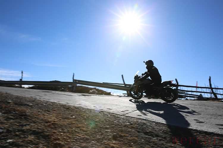 这样的上坡一直持续到山顶,由于坡度太陡,经常是一档爬上去。这时候KPT的水冷散热器就起了很大的效果,大概持续用一档爬坡半个小时风扇就开始工作了,给发动提供了一个良好的运行环境,最大程度上的减少热衰减。这对于长途骑行来说,很有帮助。