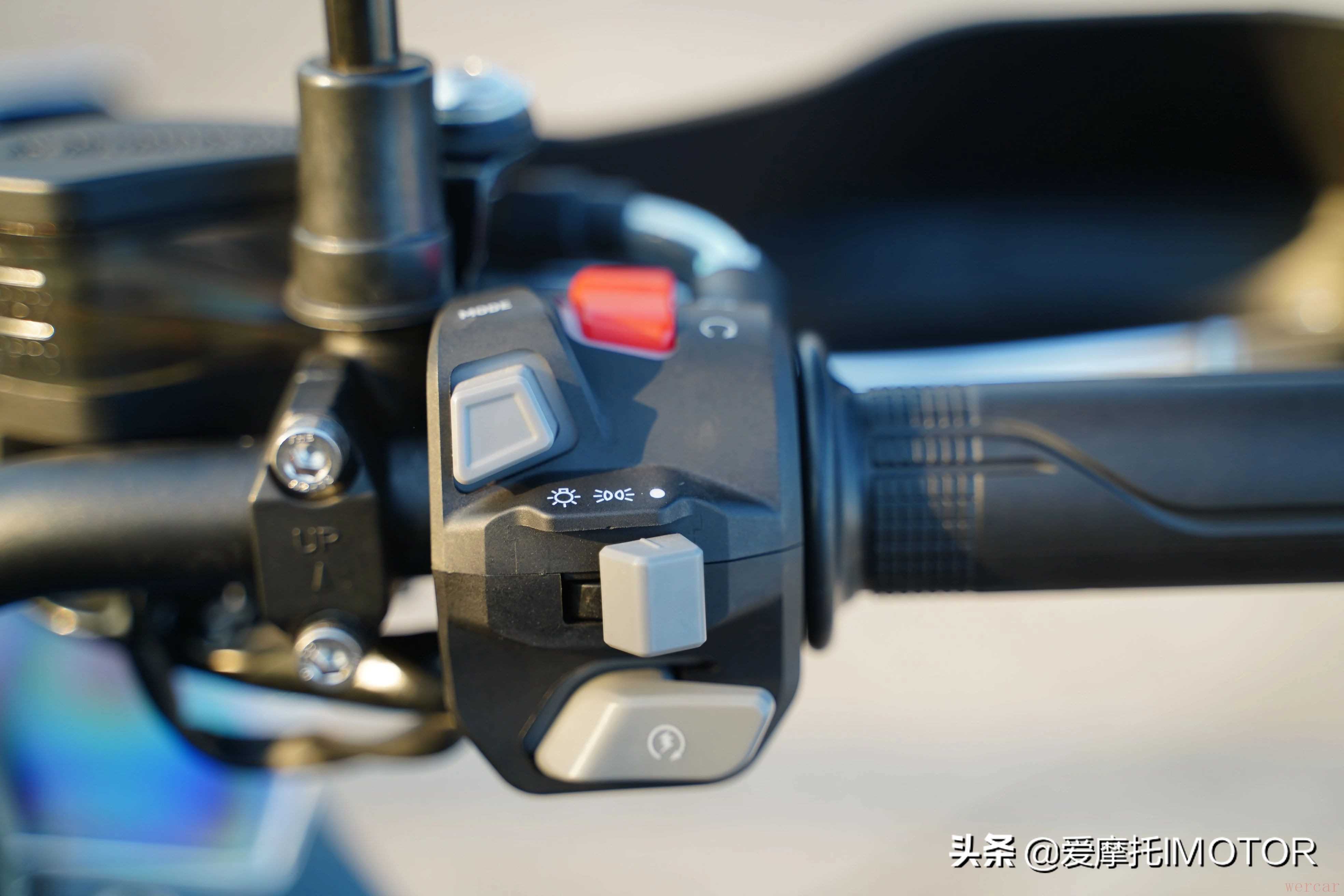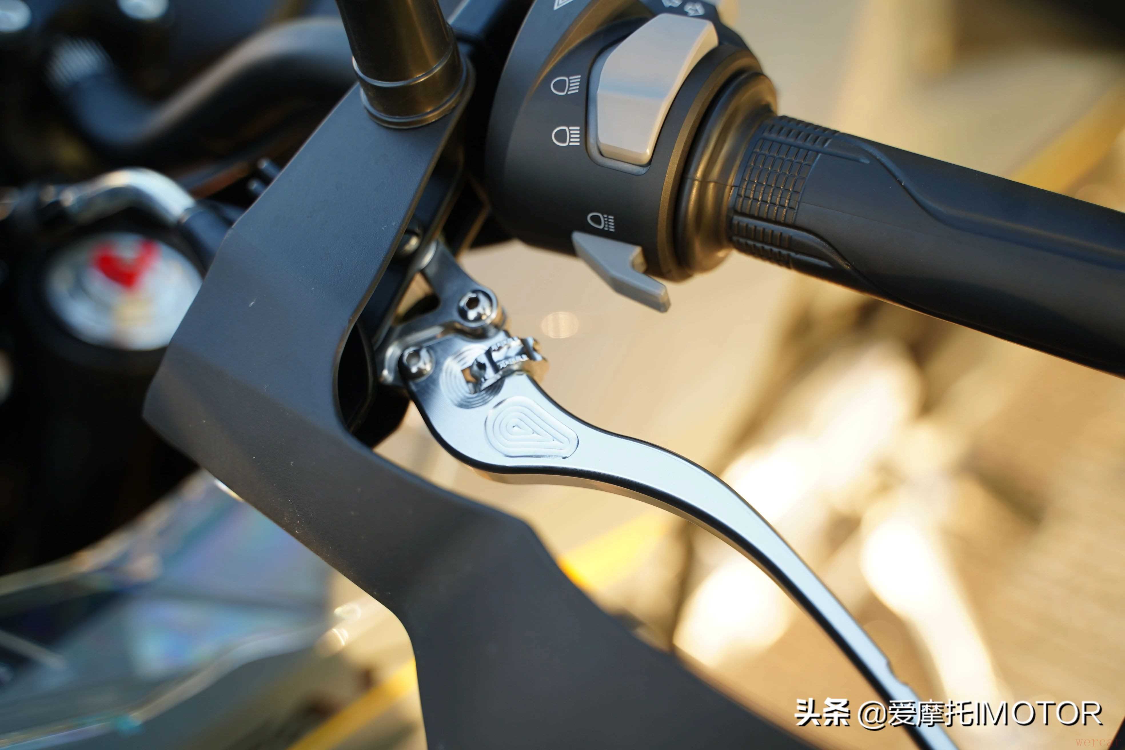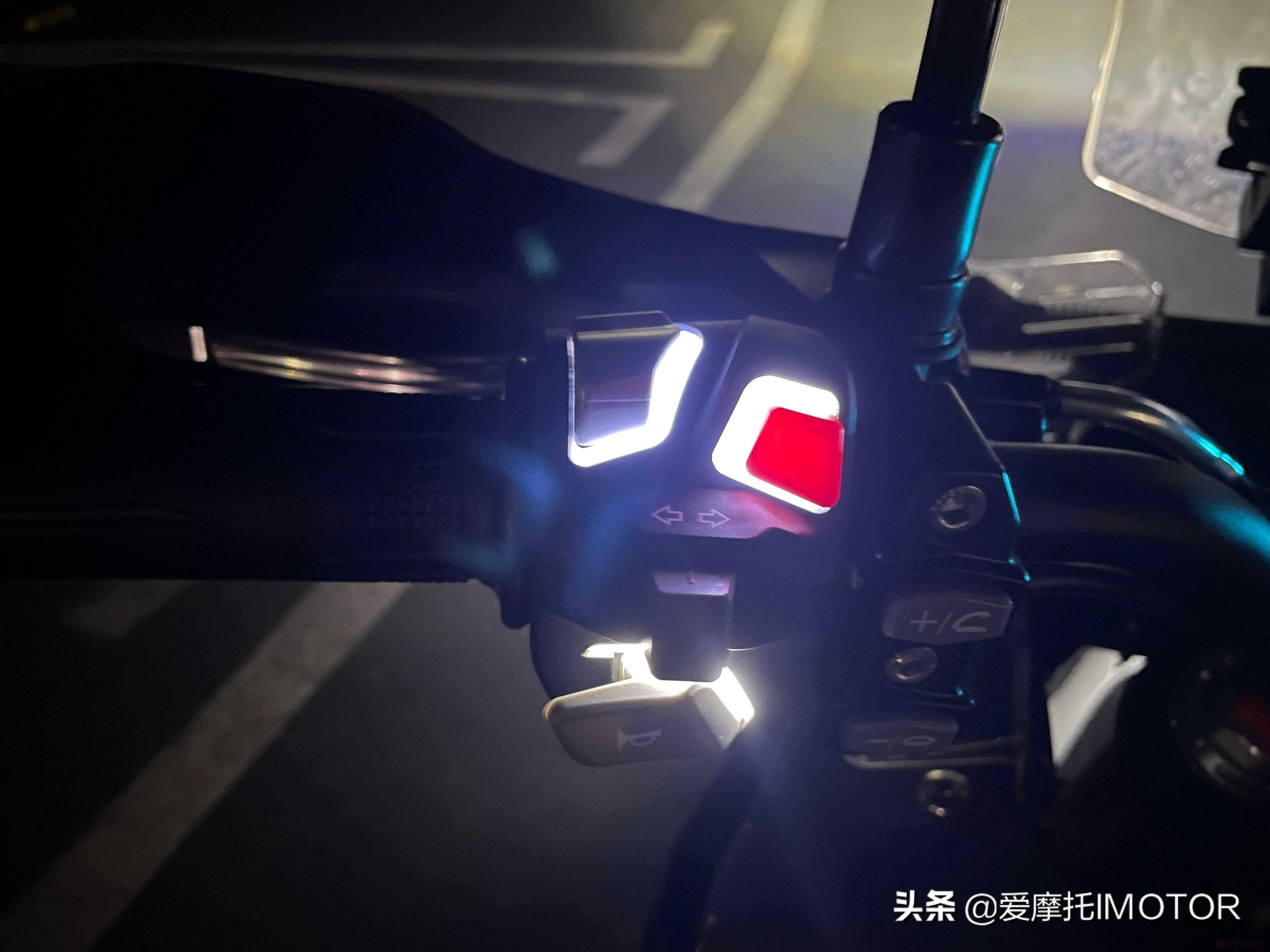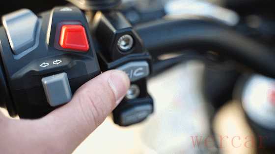 车把总成开关采用目前市面上比较流行的模组,手感回馈还不错,也带有夜间背光,盲操作便捷,另外刹车拉杆和离合拉杆的间隙可调,方便根据驾驶者不同尺寸手掌调整。