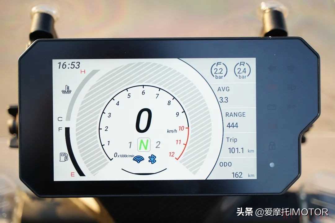 油耗方面,我们这几天在测试过程中经历非铺装以及山路稍微偏向暴力的骑行后,油耗算出来是百公里4.3升,如果长途巡航的话油耗还能进一步降低,KPT400搭载一个18.5L大油箱,最保险也能够提供400公里的续航。
