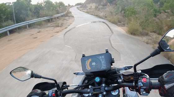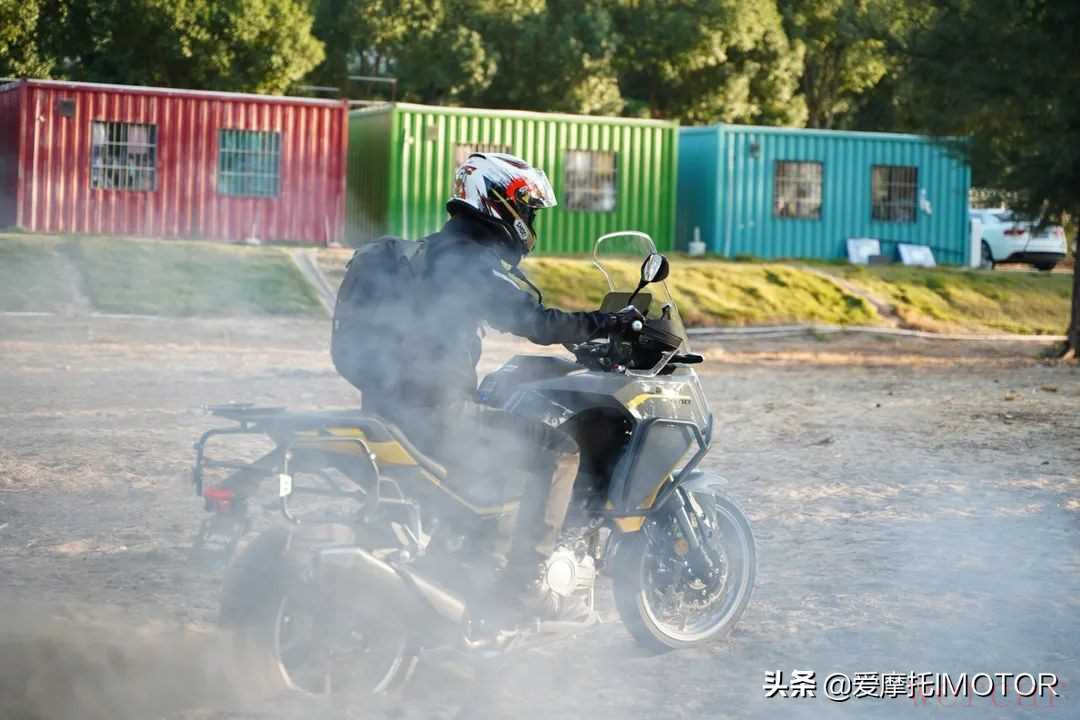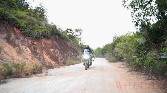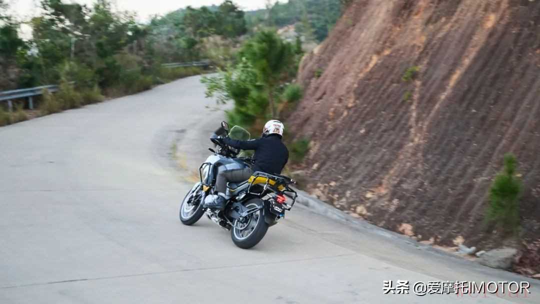 在经历了非铺装路面以及山路的骑乘体验后,我整体感觉KPT400的操控在运动性上并不是特别突出,更倾向给人舒适轻松的驾驭感受,车头虽然看起来很大,但是转向并不像想象中笨重,即便不带三箱有着211kg的整备质量,但是在低速驾驭也并不困难,反而感觉车头很灵活。