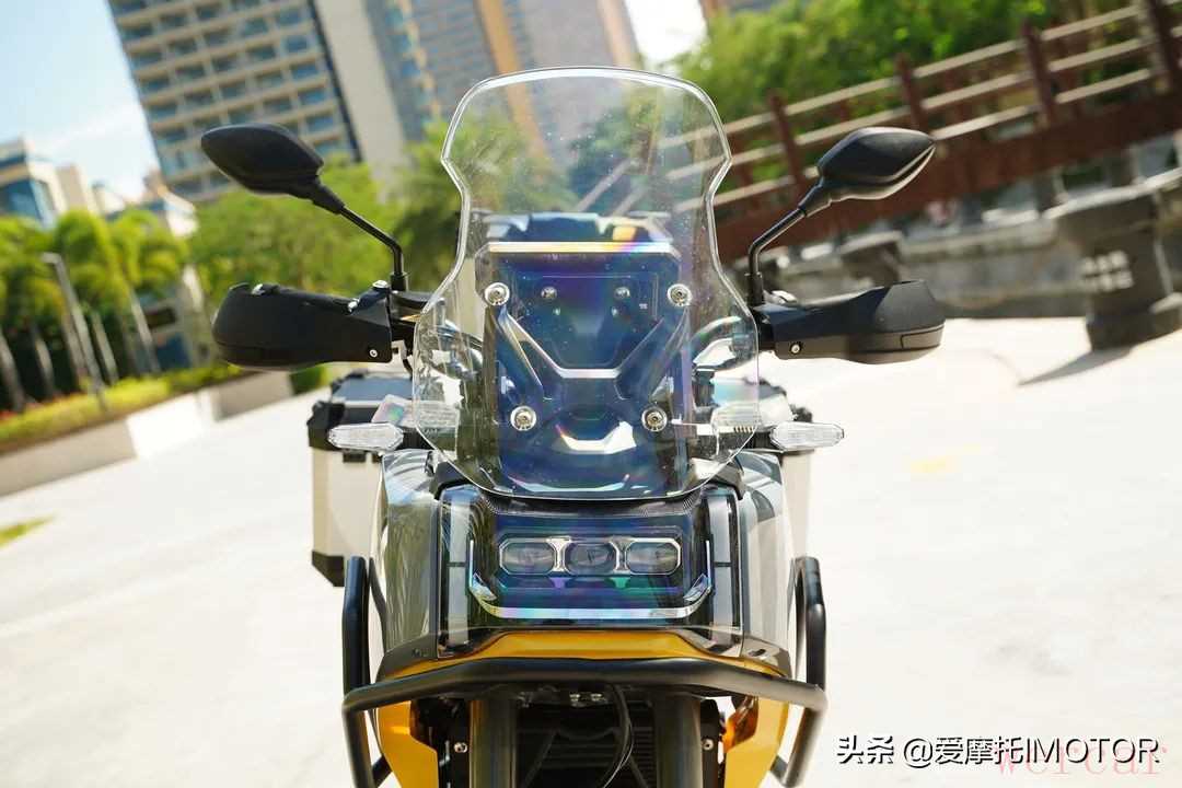 整体来看你会觉得车头在整个视觉上非常突出,看上去和市面上那些采用鸟嘴造型的车型差异很大,有人说像哈雷的泛美,但是我觉细节上还是有很大不同的,只能说都是方正车头这个特点让人很容易将它们联系在一起,实际上KPT400的定位要更偏向长途休旅设定,而非真正的硬核ADV。