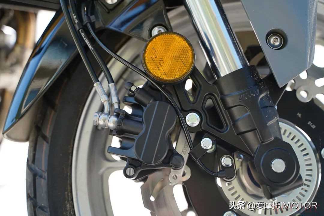 ▲刹车方面,前双碟盘加上两个双活塞卡钳,后刹则配备单向双活塞卡钳,前后ABS。