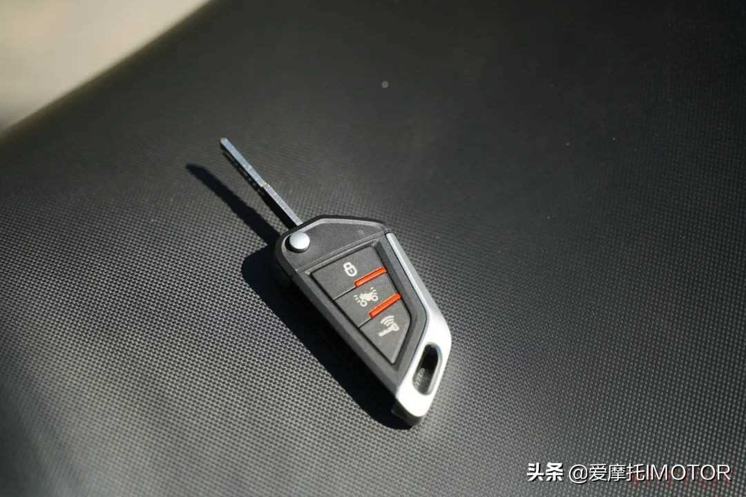 KPT400在智能化特征上也有着鲜明的亮点,搭载无钥匙启动,智能车头锁,以及智能仪表,提高了日常使用的便利性,感应钥匙做的很有分量感,这点要给个好评,靠近车辆自动感应,启动开关采用一键开启模式,锁车时摁感应钥匙的锁车按键,龙头锁也会自动锁定,方便停车,无需再用机械钥匙去锁龙头。