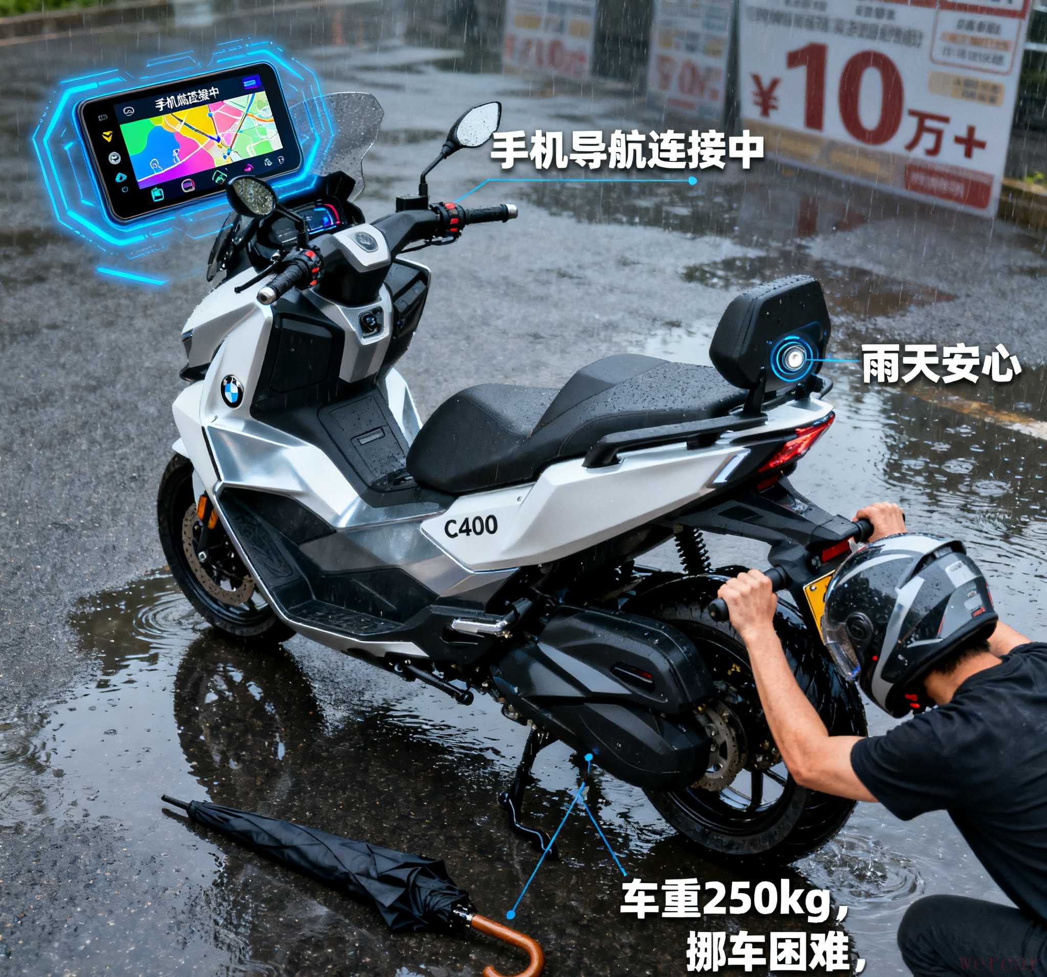先聊“面子党”首选的雅马哈X MAX300和宝马 C 400 。雅马哈的运动基因是真的顶,X MAX300过弯时车身跟随性特别好,动力线性得像“丝滑巧克力”,市区超车、高速巡航都有底气;但缺点也明显,座桶空间比同级别小一圈,全盔得挤一挤才能放进去,而且保养费用不低。宝马C400的豪华感直接拉满,智能互联能连手机导航,安全辅助系统在雨天骑行超安心,可车重接近250kg,新手挪车容易“手忙脚乱”,价格也比雅马哈贵了近2万,性价比不算高。