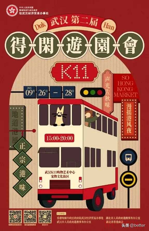 「叮——」 一声悠长的车铃,迷你版"叮叮车"车厢,拖着假期的前奏入场,TVB经典台词墙给你戏瘾大发的机会,尖沙咀街头的霓虹闪烁在汉口上空,在HK拍HK同款。第一次来武汉,每家都准备了不同的周边送给你,brezi咖啡试饮送手提包、渣叔咖啡送粉色兔子挂件、发财咖喱鱼蛋送冰箱贴......一边买一边薅,初次见面的诚意拉满。