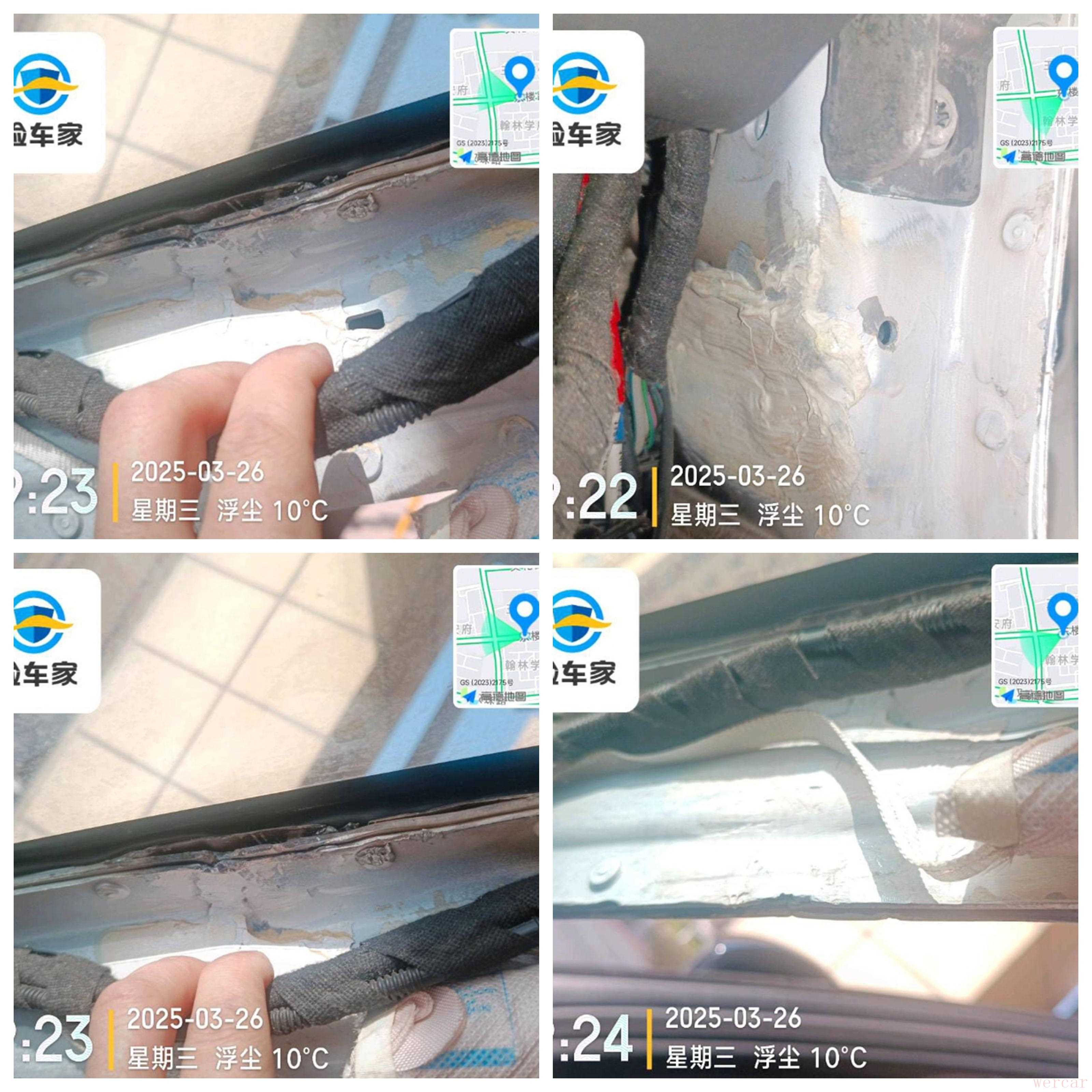 果然,仔细检查后发现右侧A柱存在切割焊接修复,A柱表面坑坑洼洼的,既然A柱都有切割了,那妥妥的重大事故车。