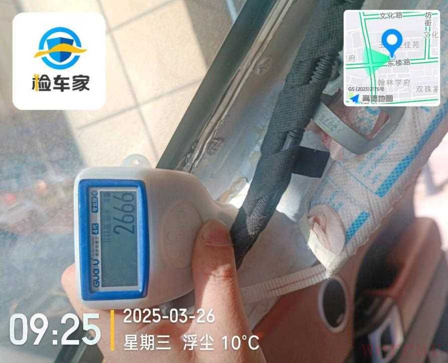来到现场对车辆进行查看,一来就发现右侧A柱的漆面数值爆表了,2000多微米的数值显示这个地方居然有大问题!