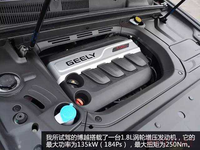 吉利博越为消费者提供1.8L涡轮增压和2.0L自然吸气两种排量的车型,其中博越所搭载的1.8TD发动机是搭载在博瑞上的1.8TD“中国心十佳发动机”的高功率版本,通过对关键技术重新开发升级,最大功率135kW,峰值扭矩285Nm。扭矩提升14%,油耗降低了3.7%,而这台1.8TD版本车型也正是吉利博越主推车型。在博越上市前期,爱卡汽车抢先试驾了这台1.8T车型。