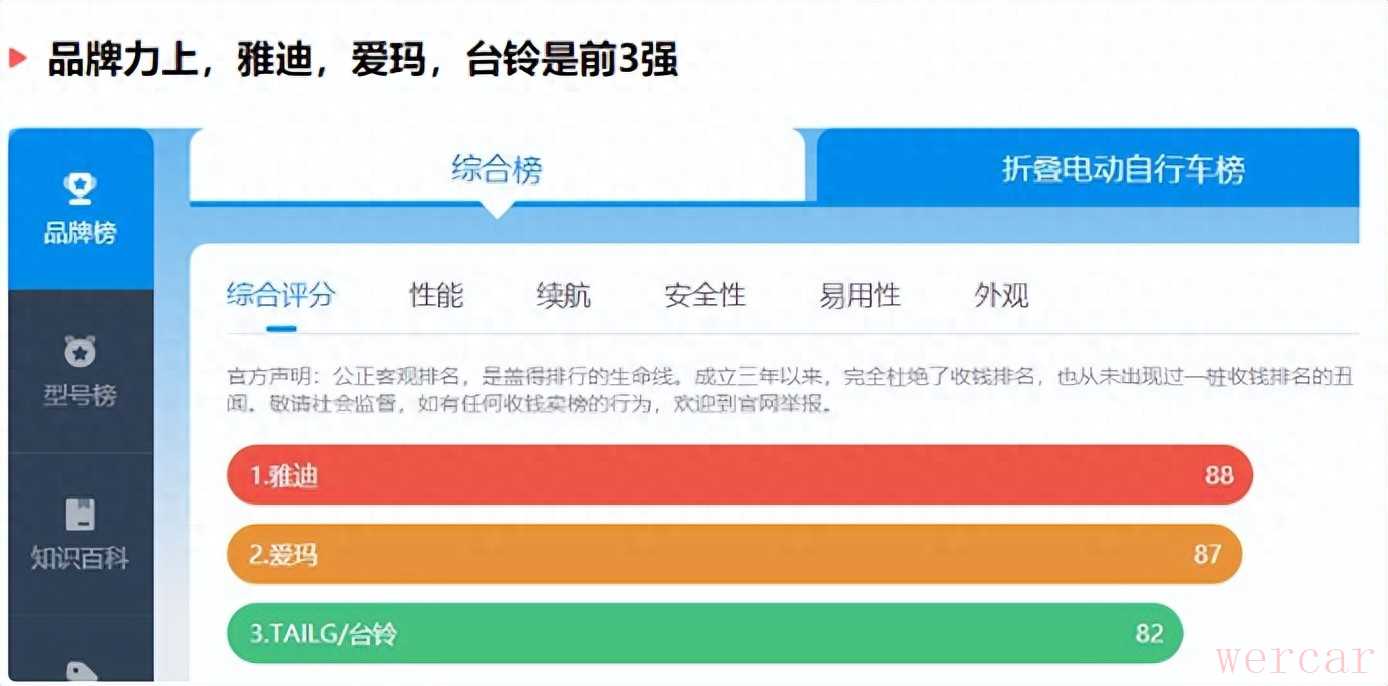 雅迪、爱玛、台铃是目前电动车的头部品牌,既然可以走到这个层次,一定是有优势的,比如雅迪是走科技路线,自主研发配置率很高,目前其他品牌没有一个可以相比的,台铃有着自己的省电科技,爱玛是颜值、科技都比较抗打,虽然这3大品牌屡登投诉榜,但个人觉得并不意味着,它们的产品就弱于小品牌,而是因为心理预期、虚标、基数大等多重原因所决定的。