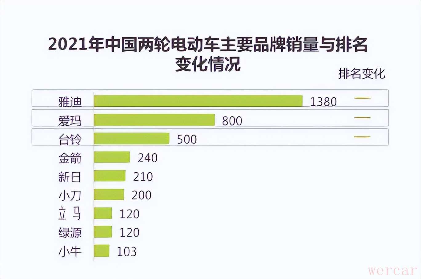 当然,客观来说,存在质量问题,虚标问题,并不是大品牌的专属,为什么雅迪、爱玛、台铃这些头部品牌的售后投诉就特别多,很重要一个原因,它们的基数太大,我们以2021年销量为例,雅迪销量为1380万,爱玛为800万,台铃为500万,仅这3个品牌的销量,就占了全年销量的一半以上,还有上百个以上的品牌,分摊剩下的市场份额。