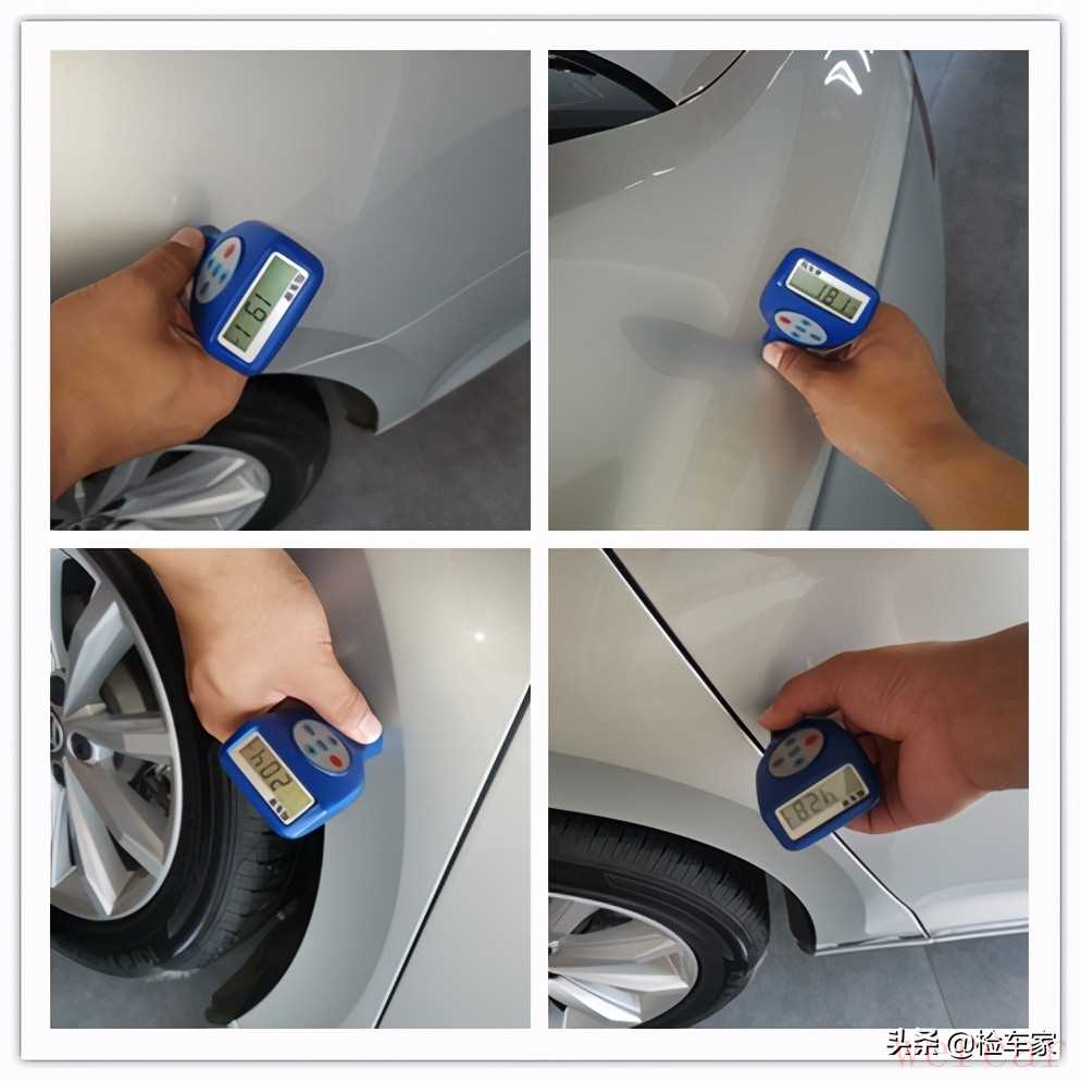通过漆膜仪上数值可以清楚的判断出左后叶子板,右后叶子板漆面都有二次修复的痕迹,右后门边上有巴掌大的一块腻子修复,全车的四角也属于剐蹭高发区,经常在转弯或者并线的时候容易出现碰撞剐蹭,这也是属于二手车常见的情况。整体外观检测下来只有前后杠修复,和四个位置的局部喷漆钣金。
