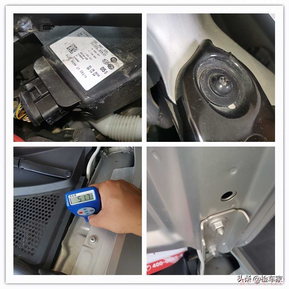 通过左前叶子板边梁漆面数值,水箱框架固定螺丝,以及大灯固定螺丝 可以简单的判断出车辆前部并没有发生重大撞击。