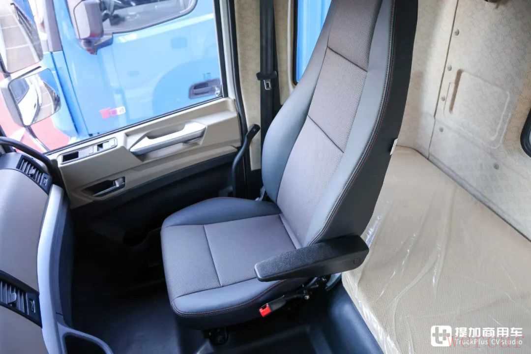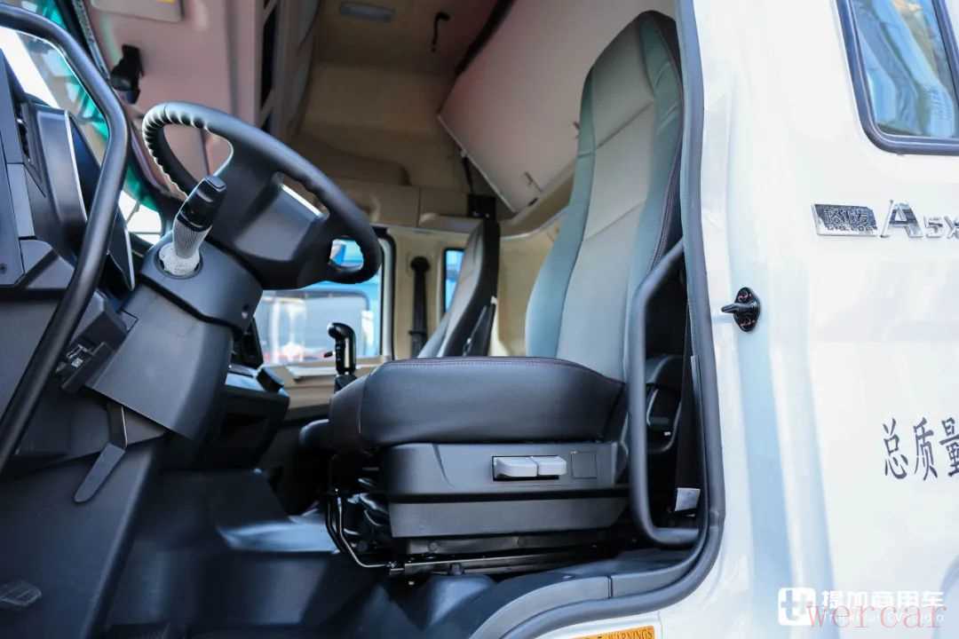 在驾驶室方面,江淮格尔发A5X采用了高顶驾驶室结构,加之卧铺,车内生活空间较为宽敞,为驾驶者带来舒适的工作场所。门把手采用横置设计,银色饰条提升高端感。整体造型魁梧有力,使整车外观看起来更富力量感。