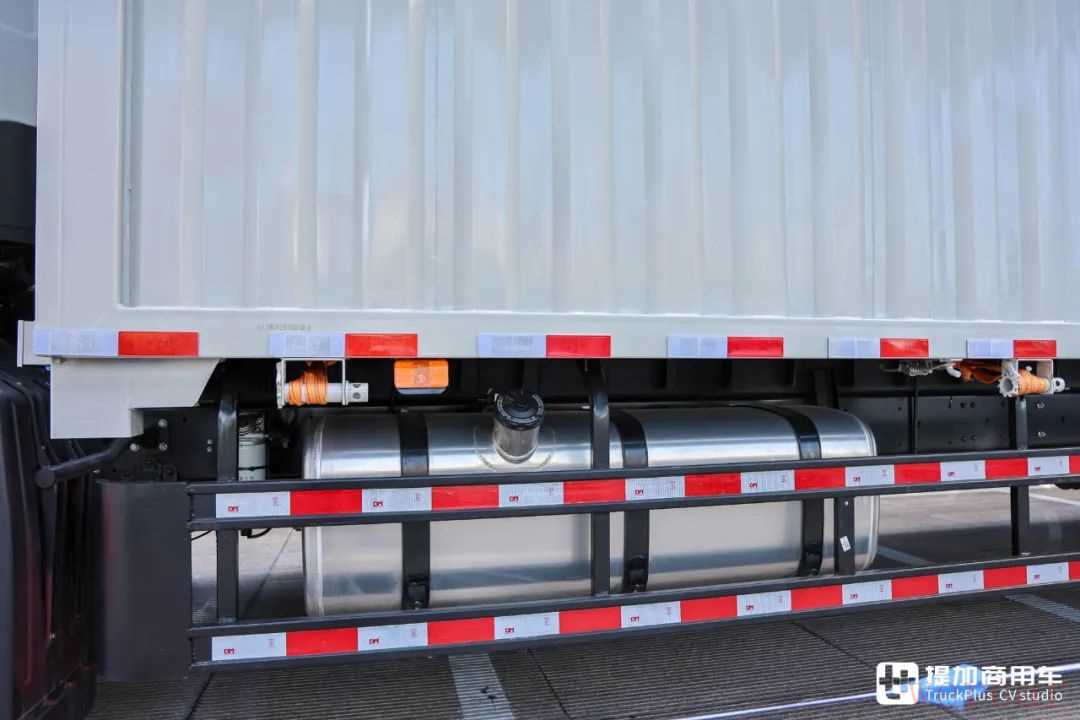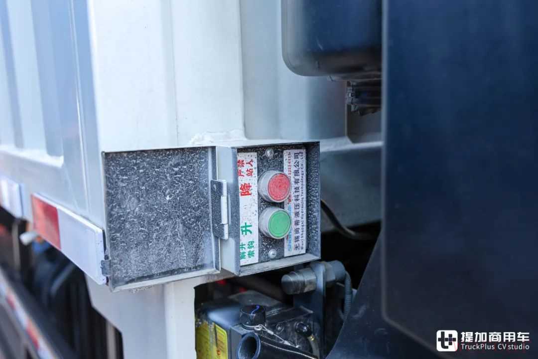 在货厢方面,实拍的江淮格尔发A5X配备了飞翼式货厢。顾名思义,飞翼式货厢的侧面及顶部可像飞机机翼一样折叠展开,整车侧面都可进行装卸,大大提升了车辆在货场中装卸货的效率。在当前配置下,货厢的容积能够做到70立方左右,对于快递快运来说相当合适。毕竟:快递拉的都是轻抛货,货厢容积自然越大越好。