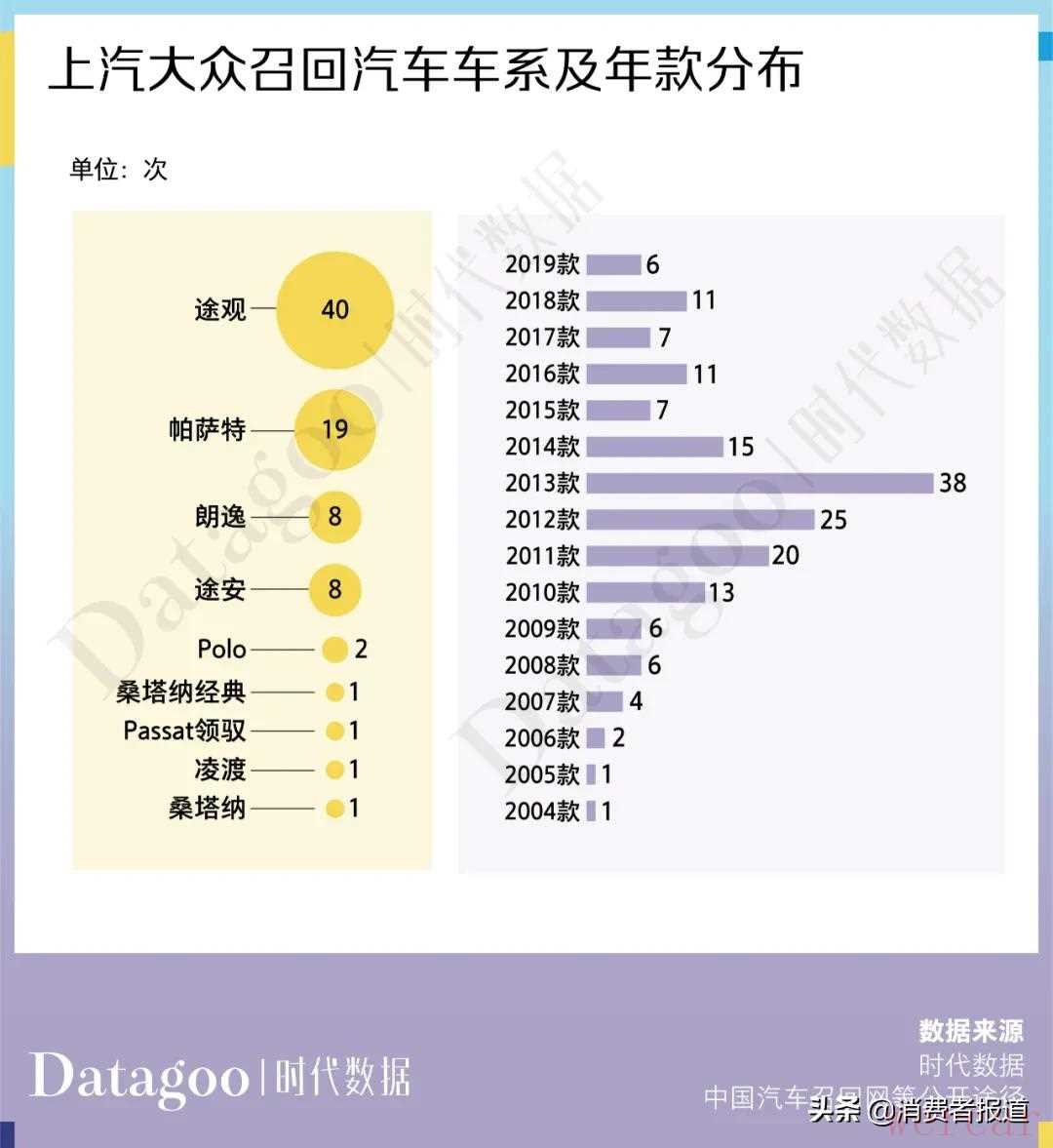 虽然朗逸和帕萨特最常被消费者投诉,但最常被召回的却是途观,其次才是帕萨特和朗逸。其中上海大众从 2007 年底以来召回途观的车型多达 40 次,帕萨特 19 次,朗逸及途安各 8 次。