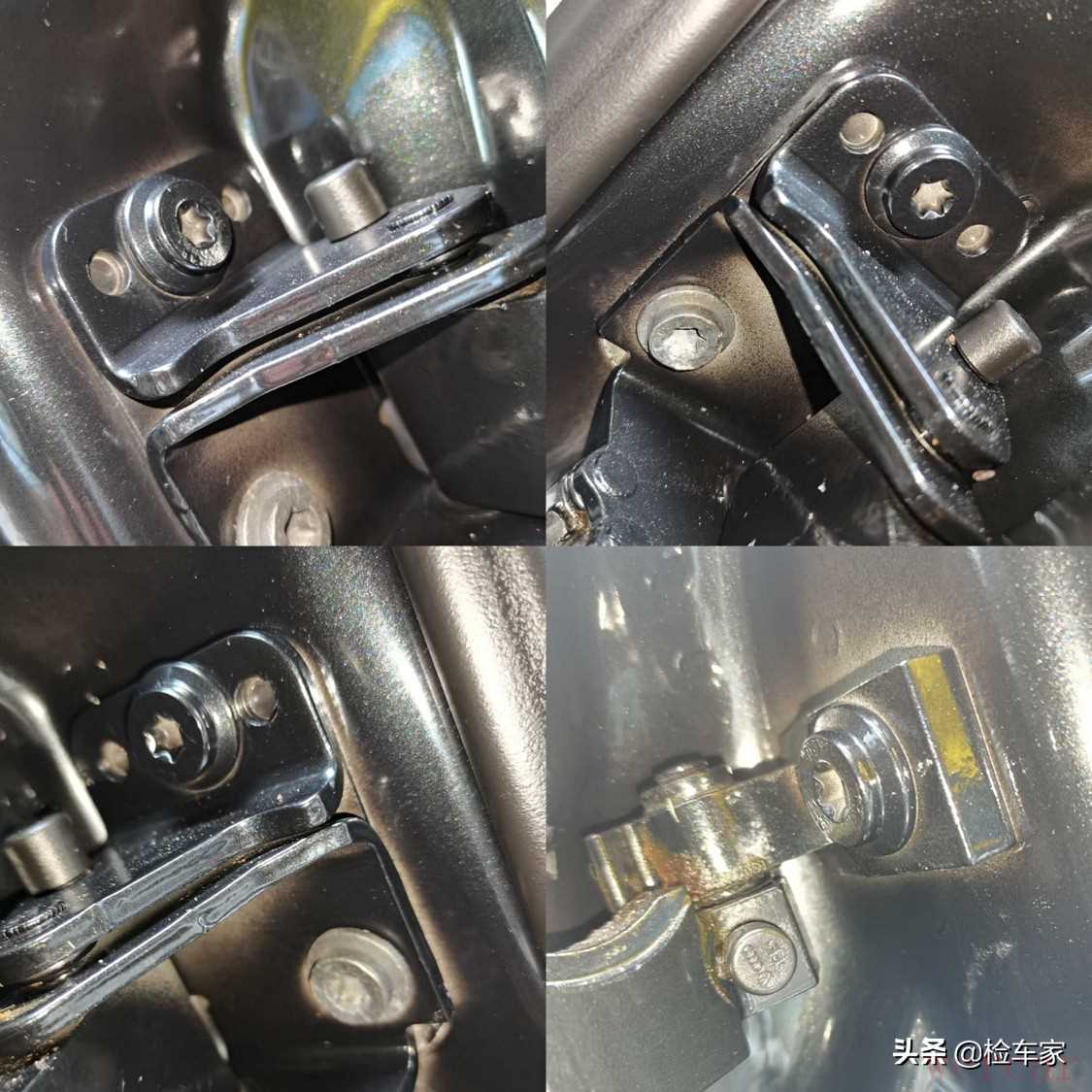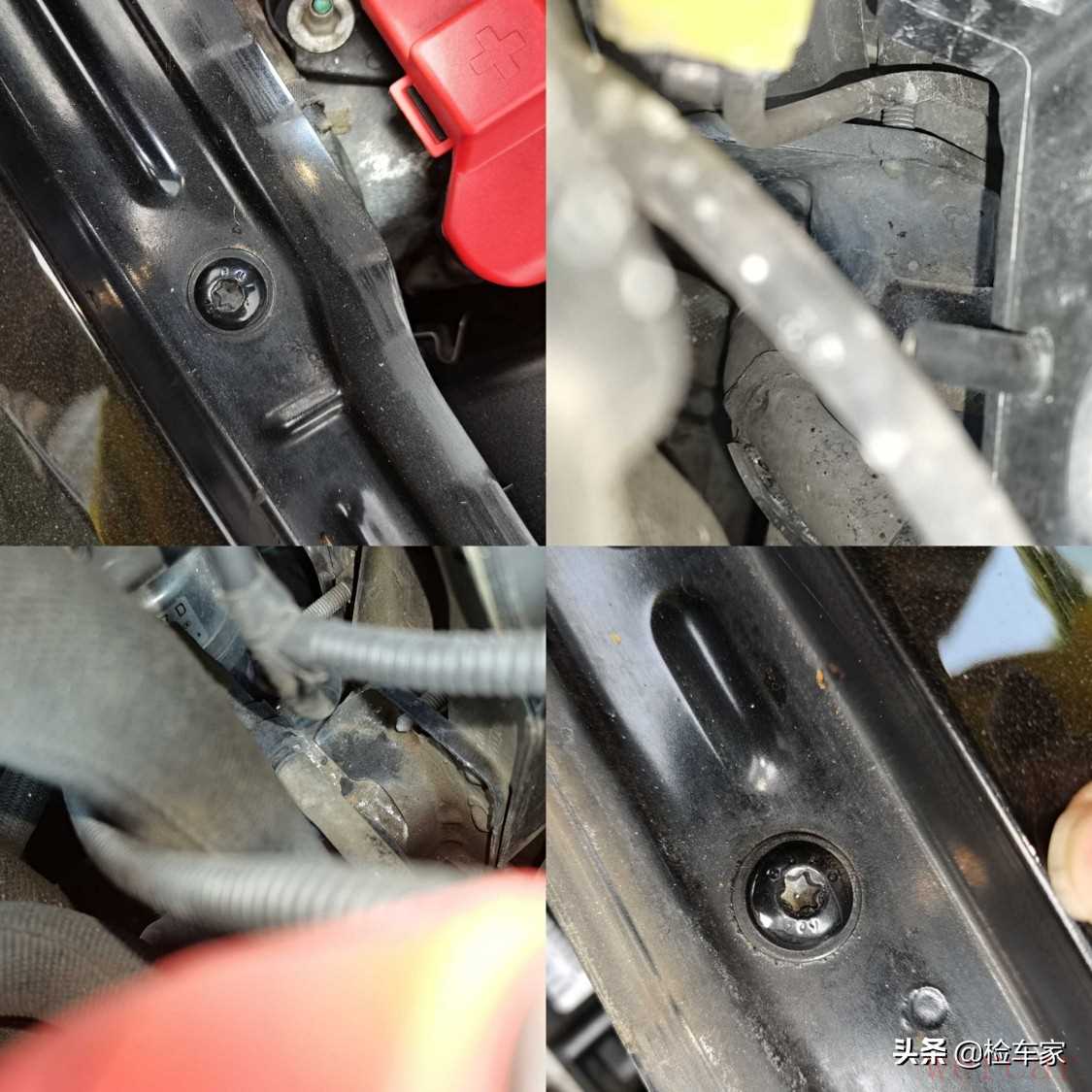 来看发动机舱的细节部分,机盖螺丝和机盖附件未见拆卸,确认机盖没有更换后不禁松了一口气,小侦探附体,检测是一个细致的工作,身体放松心里可不能放松。